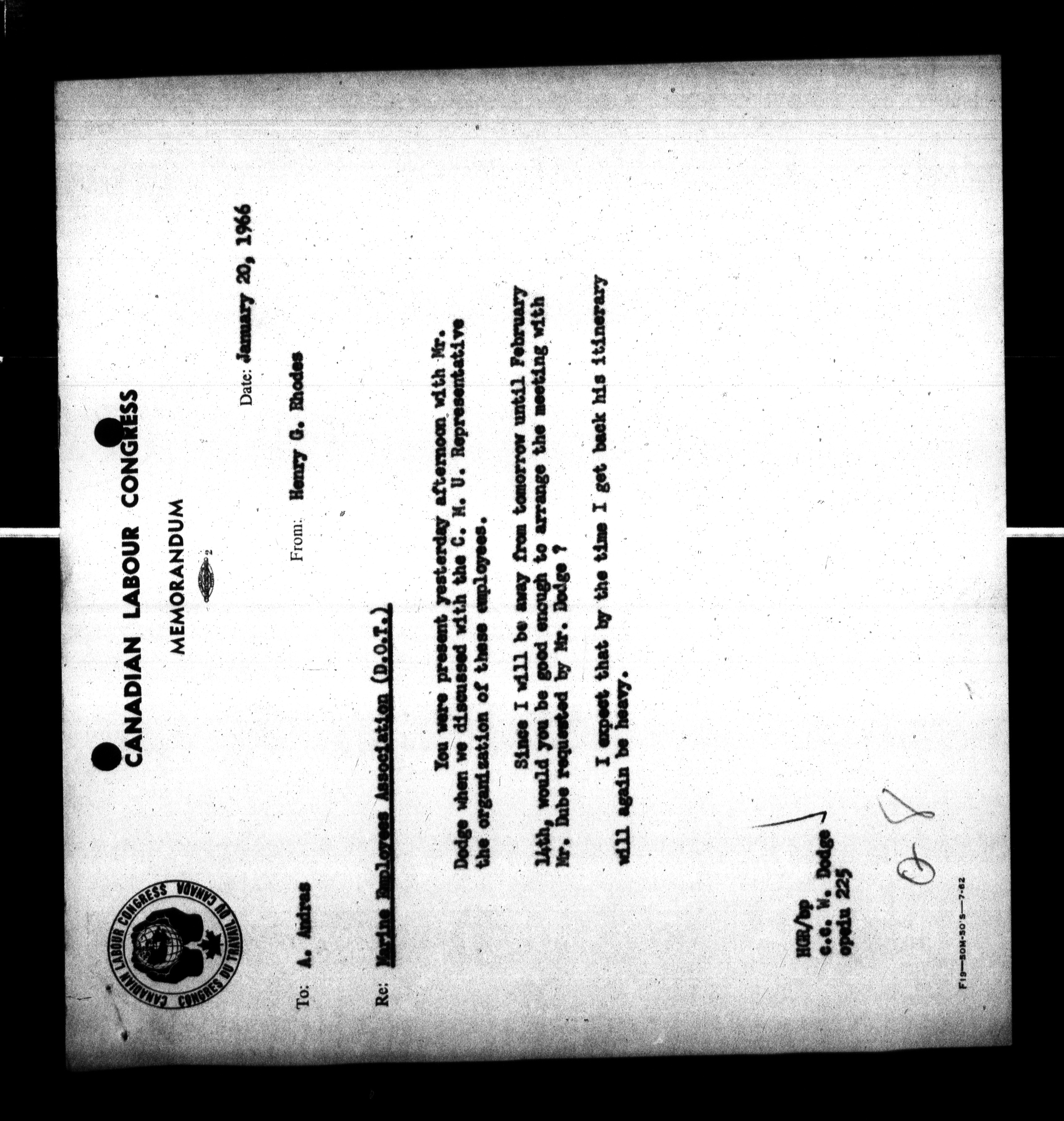 Canadian Labour Congress : William Dodge's (Executive Vice President and Secretary-Treasurer) files - 315