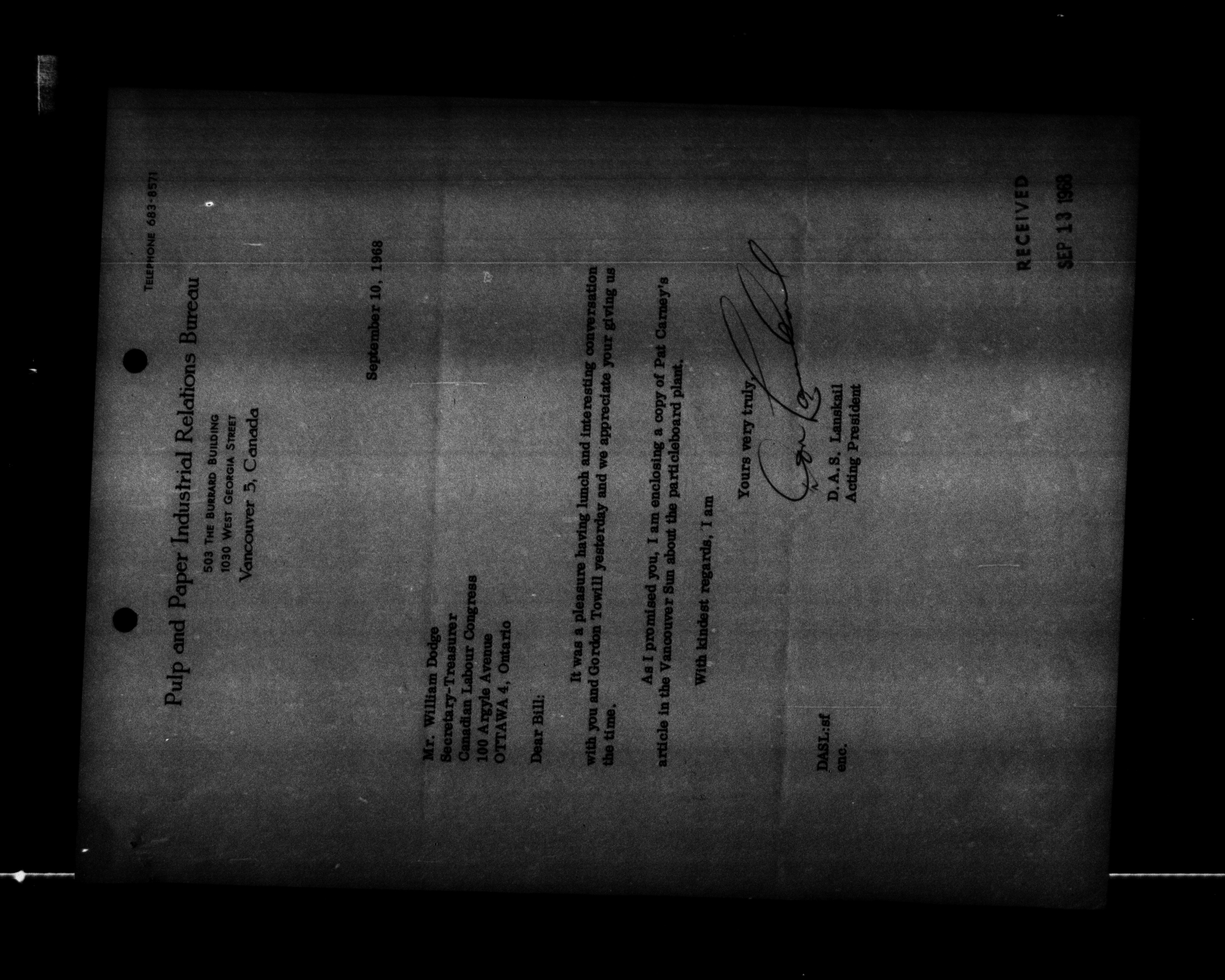 Canadian Labour Congress : William Dodge's (Executive Vice President and Secretary-Treasurer) files - 318