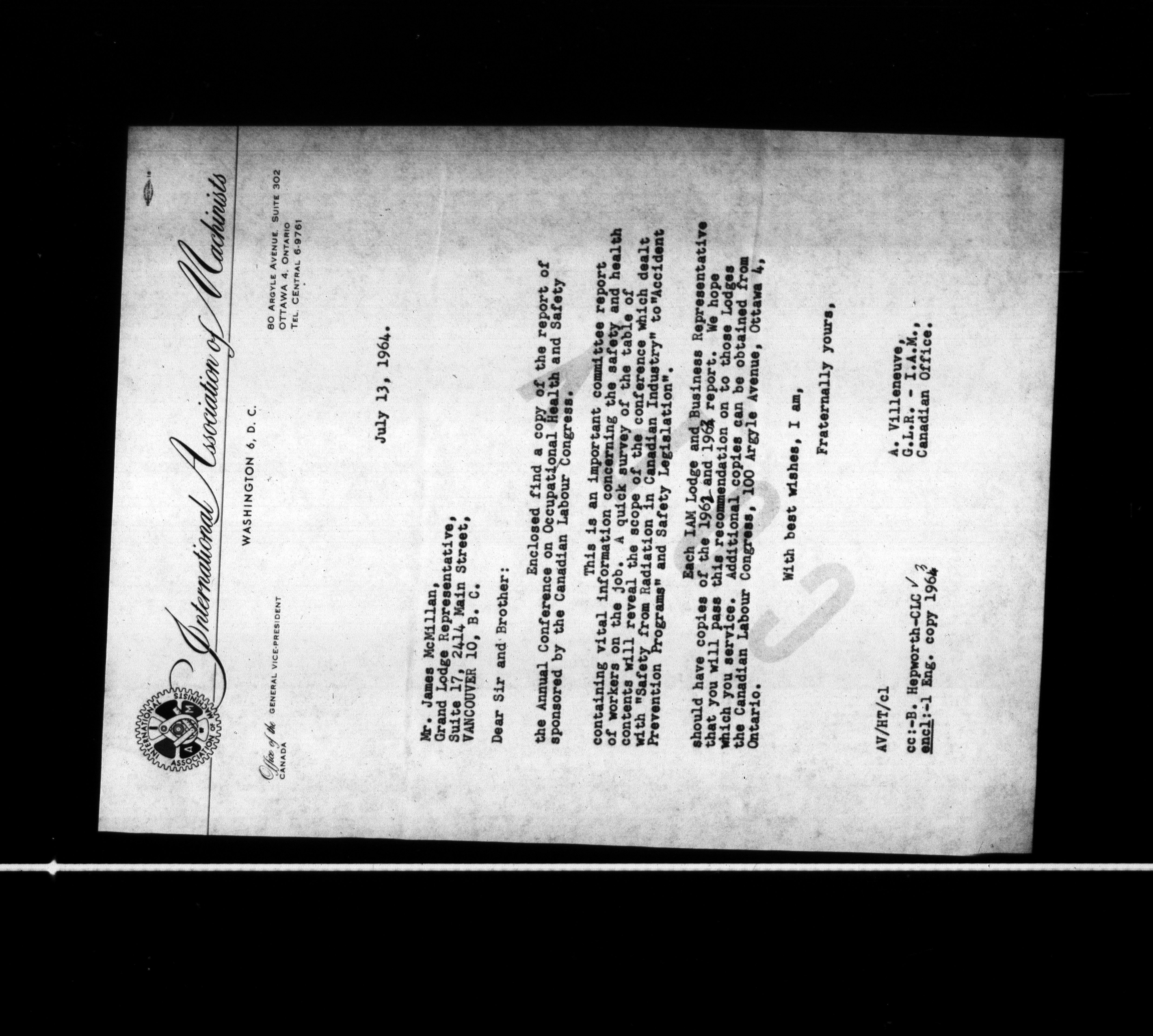 Canadian Labour Congress : Legislation Department, correspondence and invoices - 46