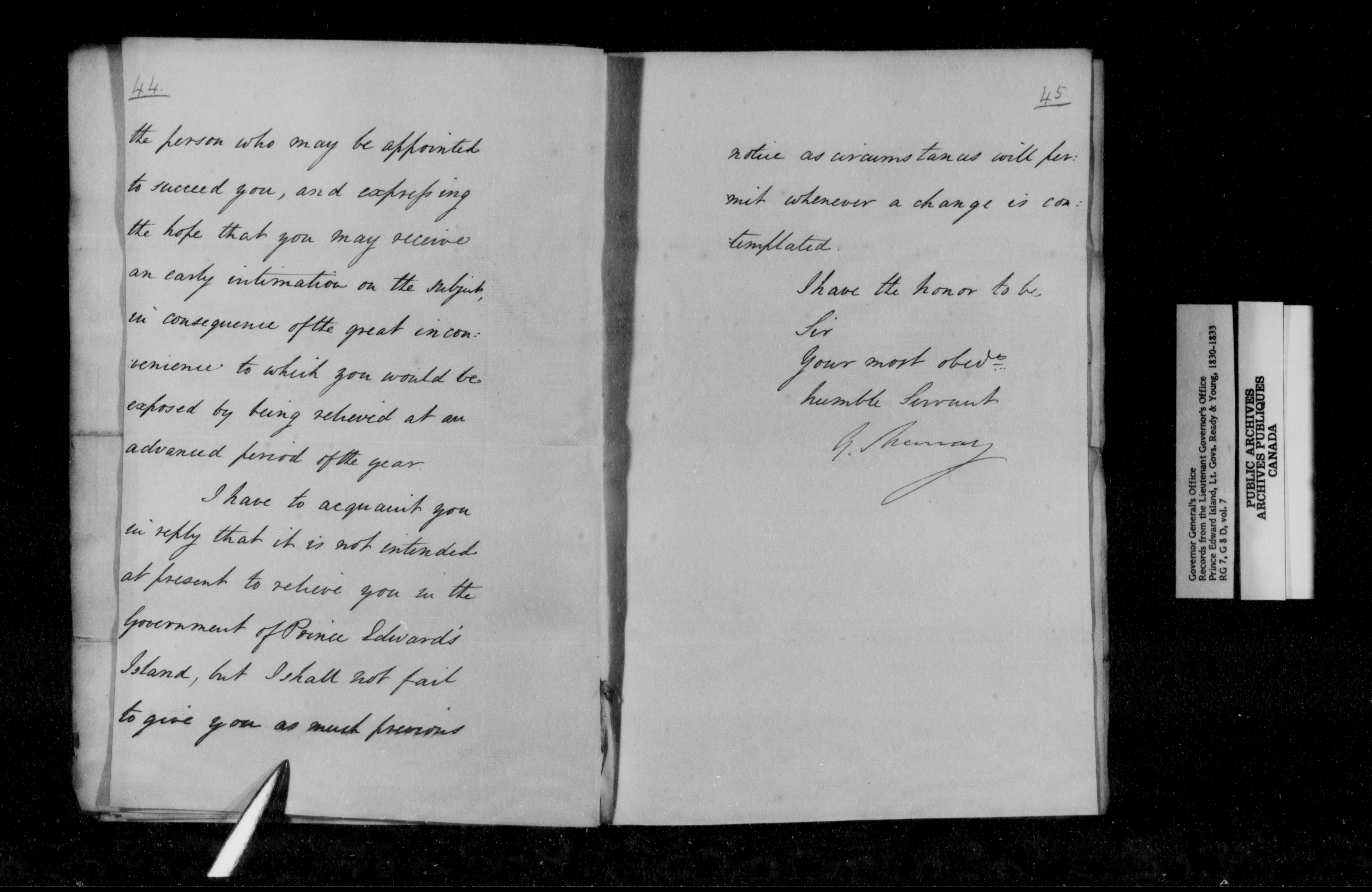 Despatches received [by the Lieutenant Governor's Office of Prince Edward Island] : H-931
