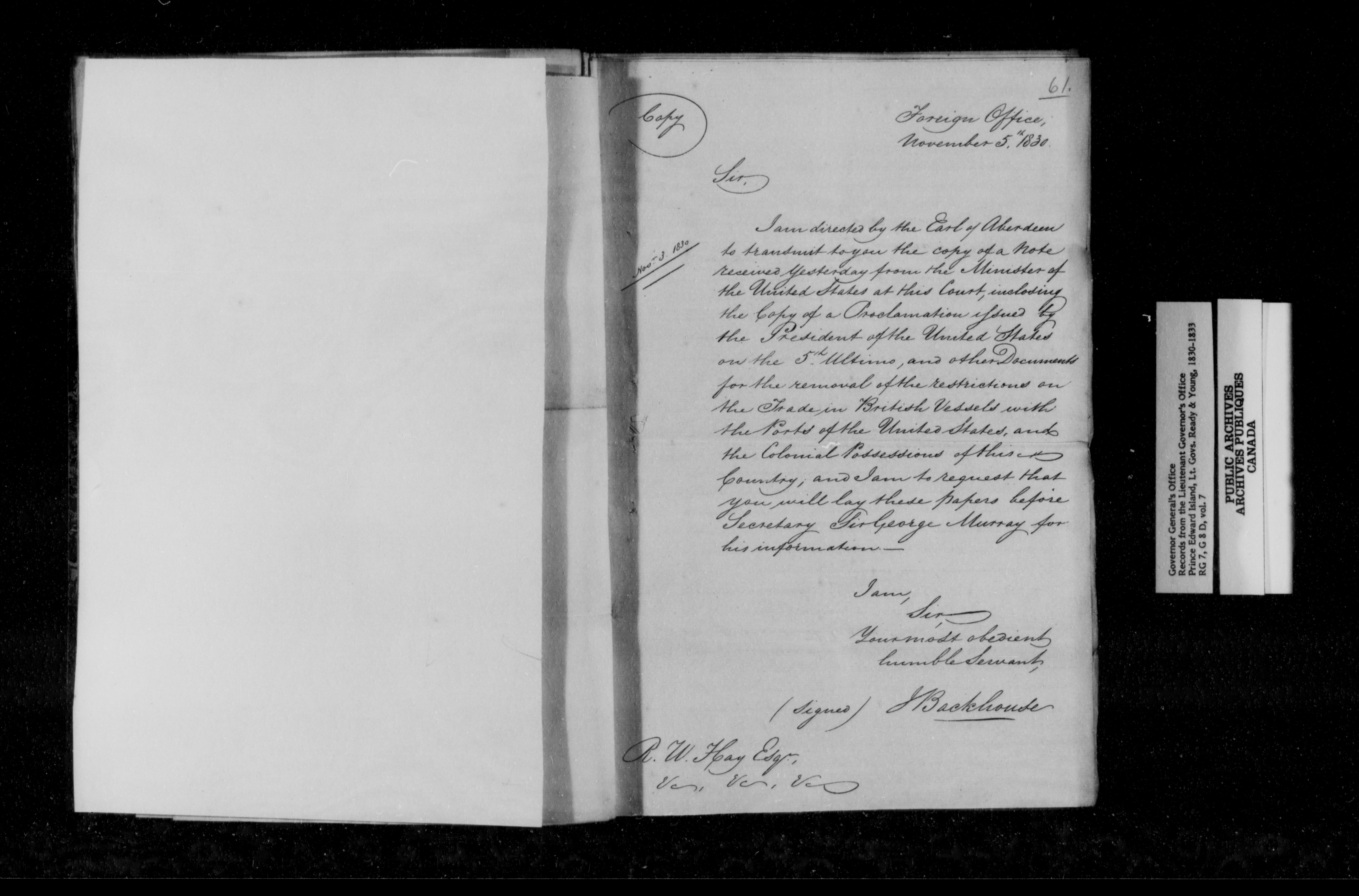 Despatches received [by the Lieutenant Governor's Office of Prince Edward Island] : H-931