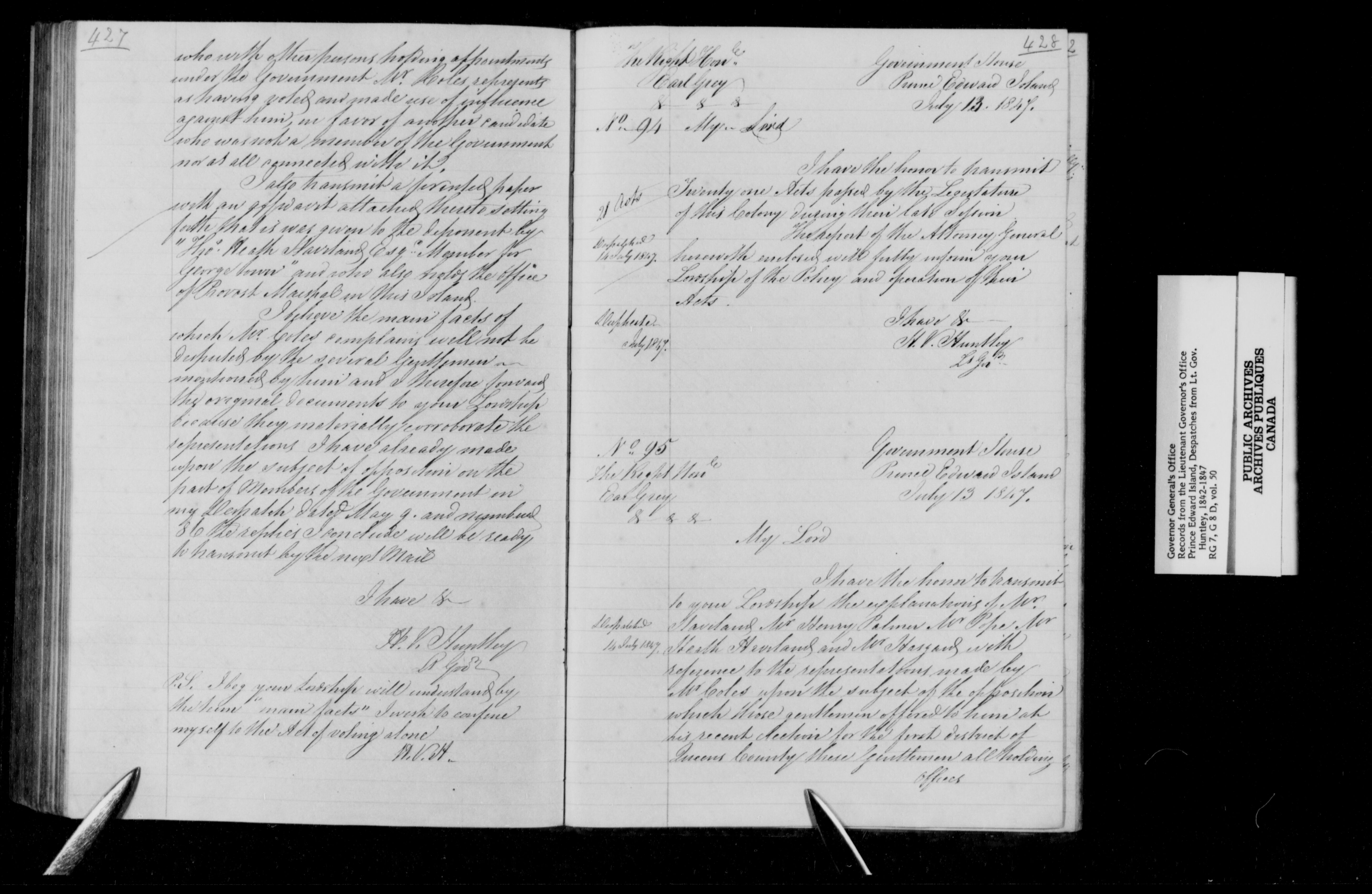 Records from the Lieutenant Governor's Office, Prince Edward Island : Despatches from Lt. Gov. Huntley, Land, Campbell & Bannerman to Secretary of State, 1847-1851
