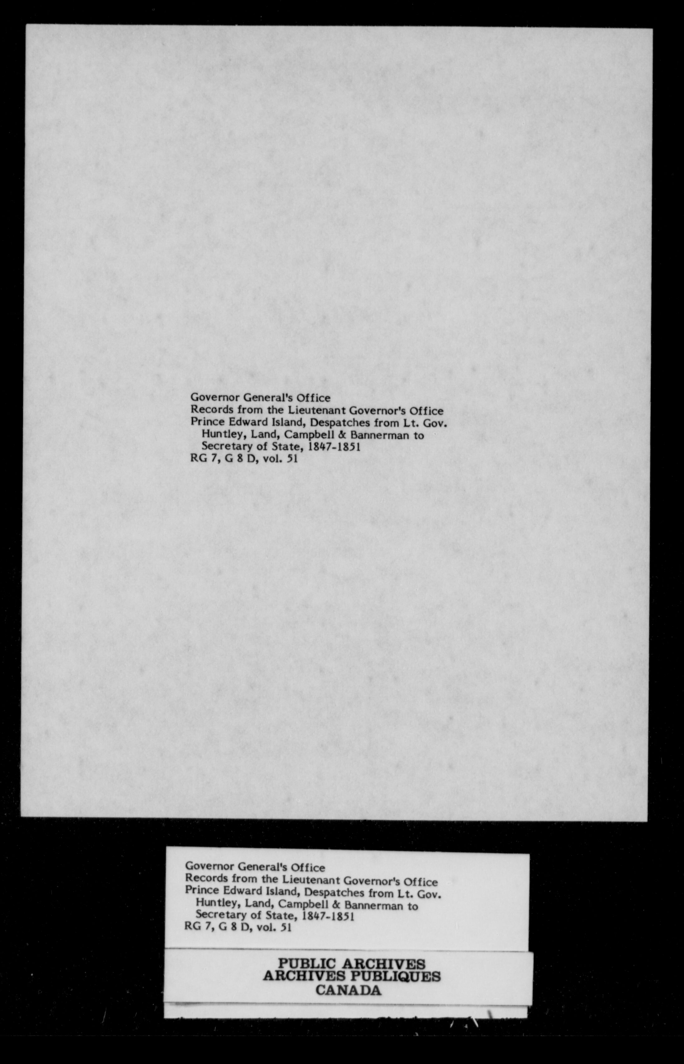 Records from the Lieutenant Governor's Office, Prince Edward Island : Despatches from Lt. Gov. Huntley, Land, Campbell & Bannerman to Secretary of State, 1847-1851