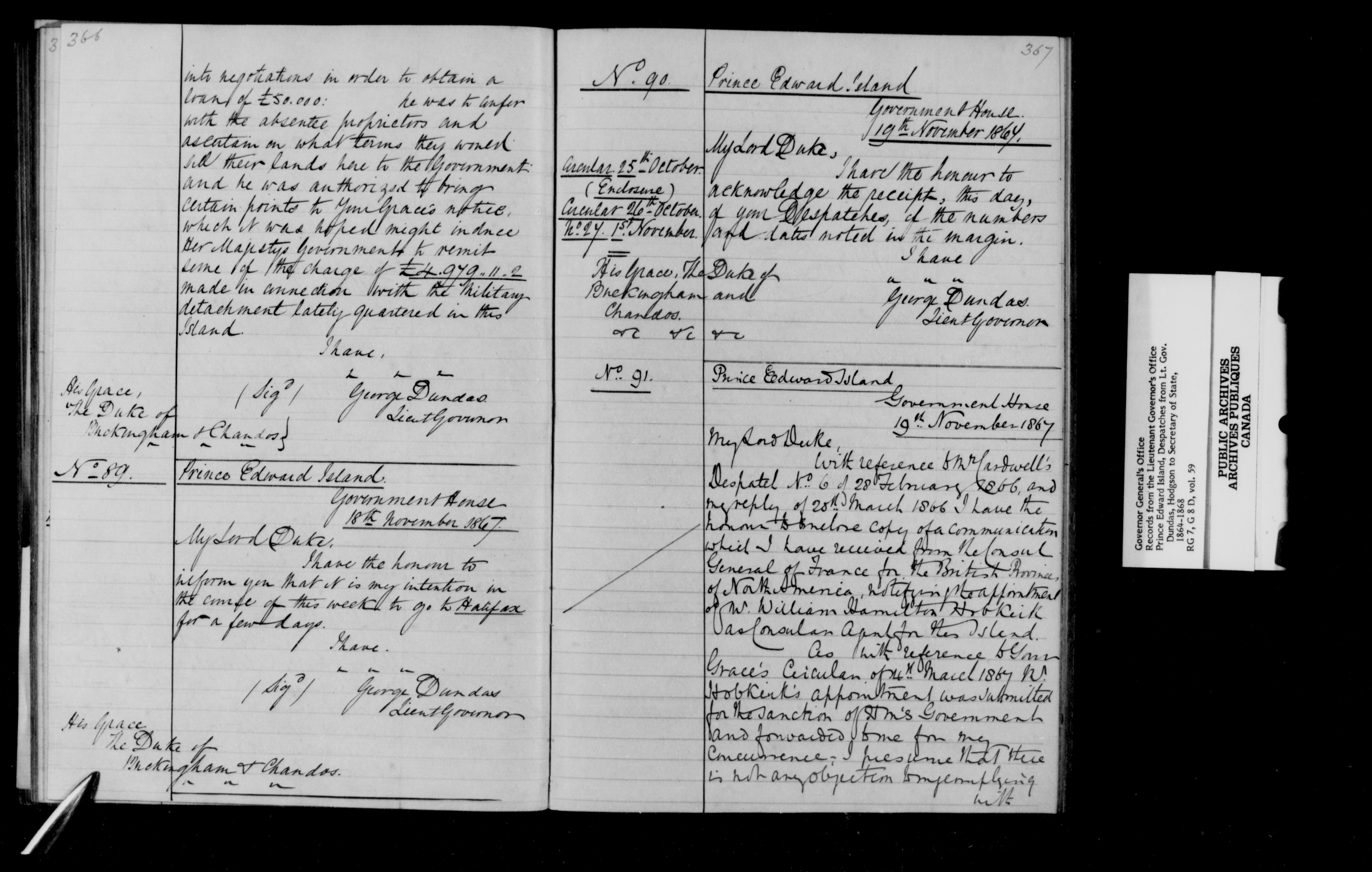 Records from the Lieutenant Governor's Office, Prince Edward Island : Despatches from Lt. Gov. Dundas, Hodgson to Secretary of State, 1864-1868