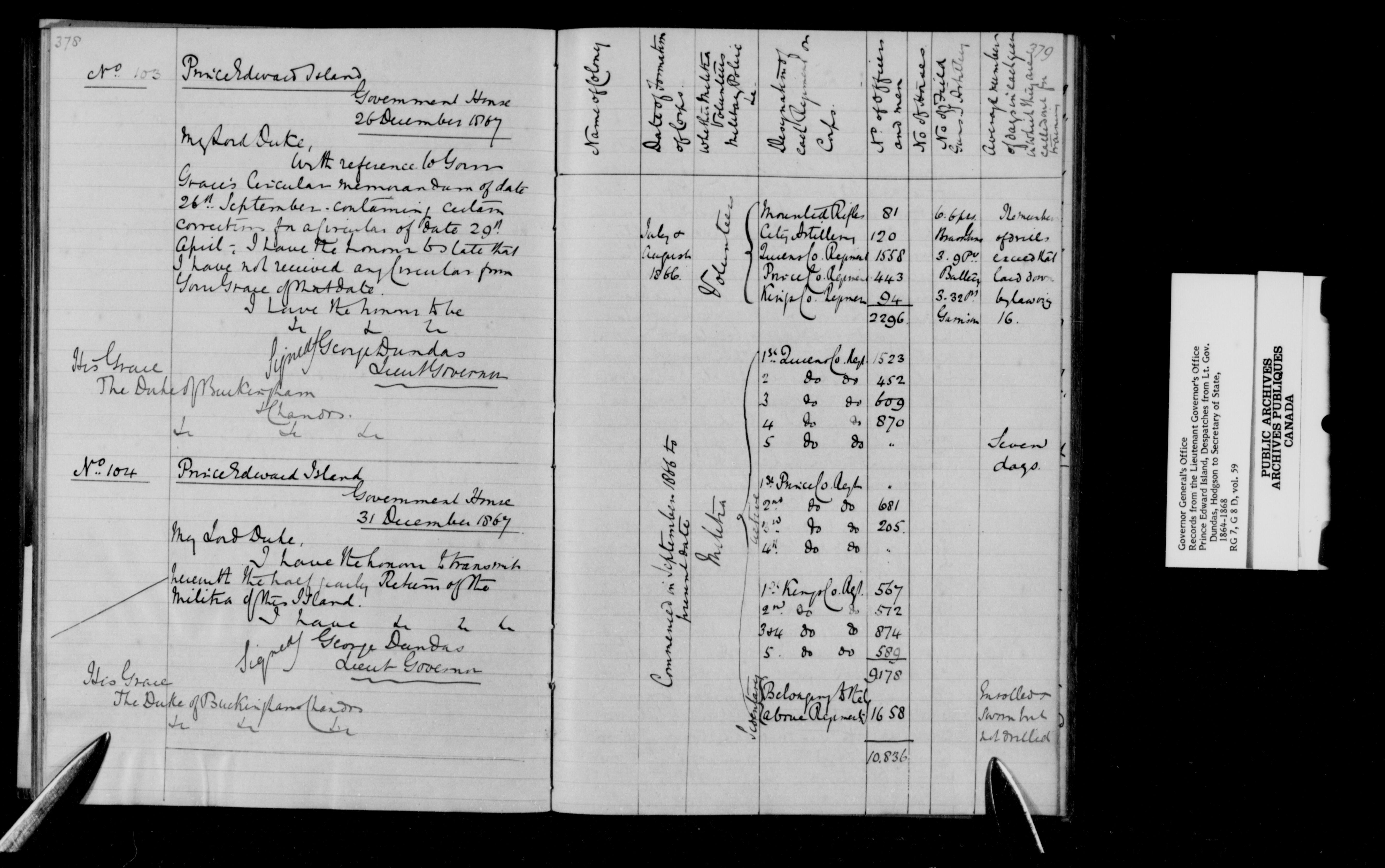 Records from the Lieutenant Governor's Office, Prince Edward Island : Despatches from Lt. Gov. Dundas, Hodgson to Secretary of State, 1864-1868
