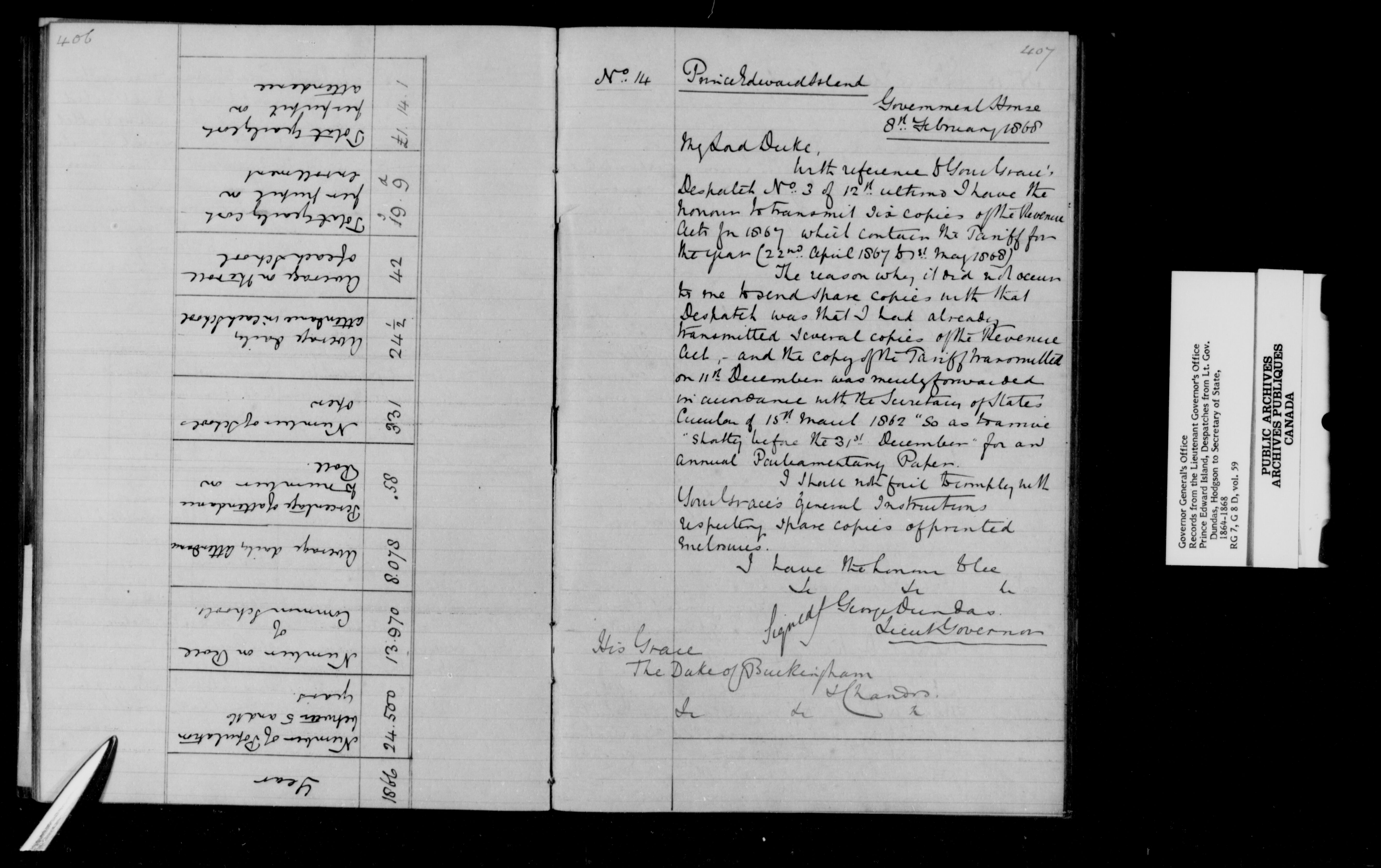Records from the Lieutenant Governor's Office, Prince Edward Island : Despatches from Lt. Gov. Dundas, Hodgson to Secretary of State, 1864-1868