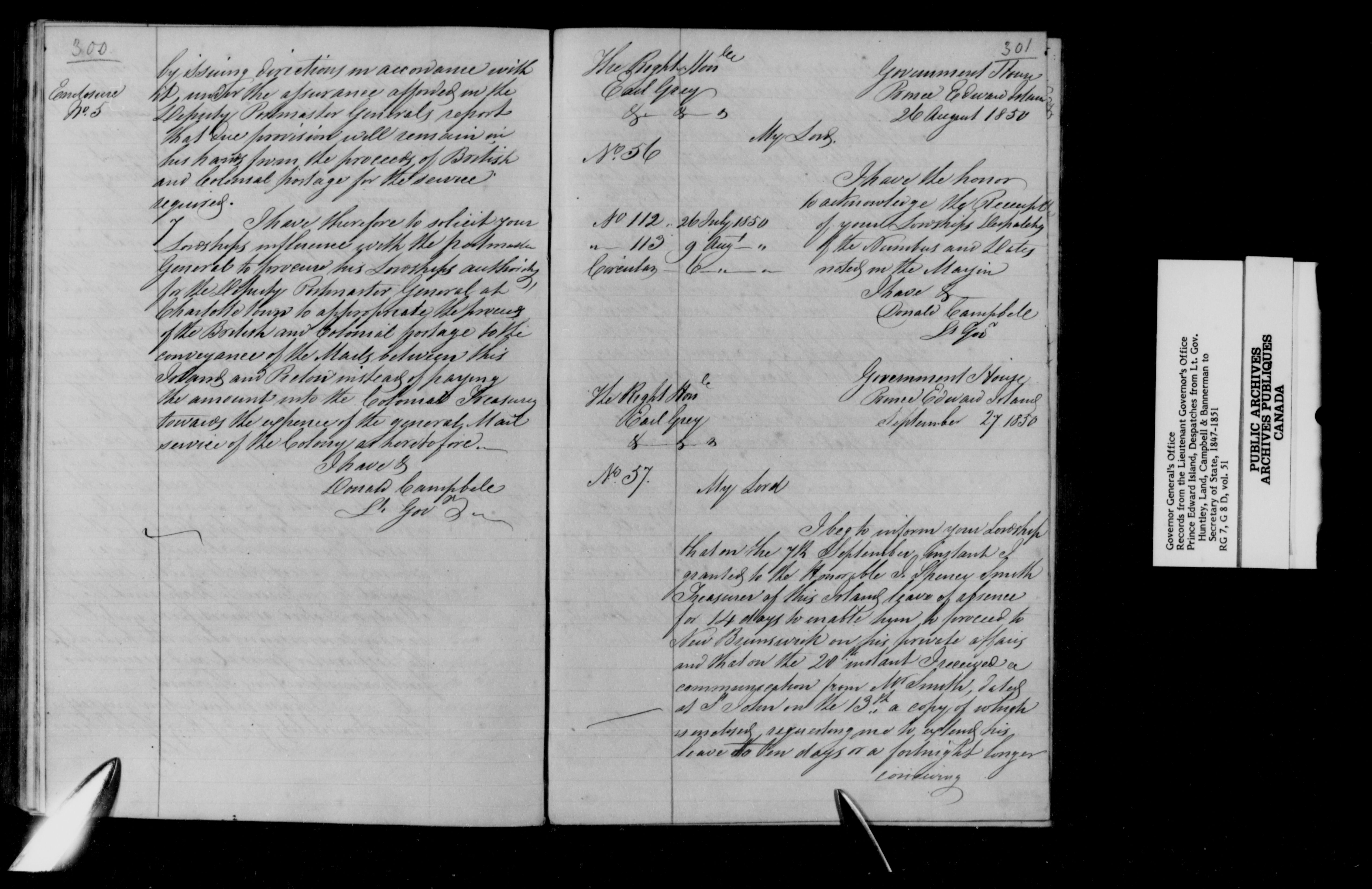 Records from the Lieutenant Governor's Office, Prince Edward Island : Despatches from Lt. Gov. Huntley, Land, Campbell & Bannerman to Secretary of State, 1847-1851
