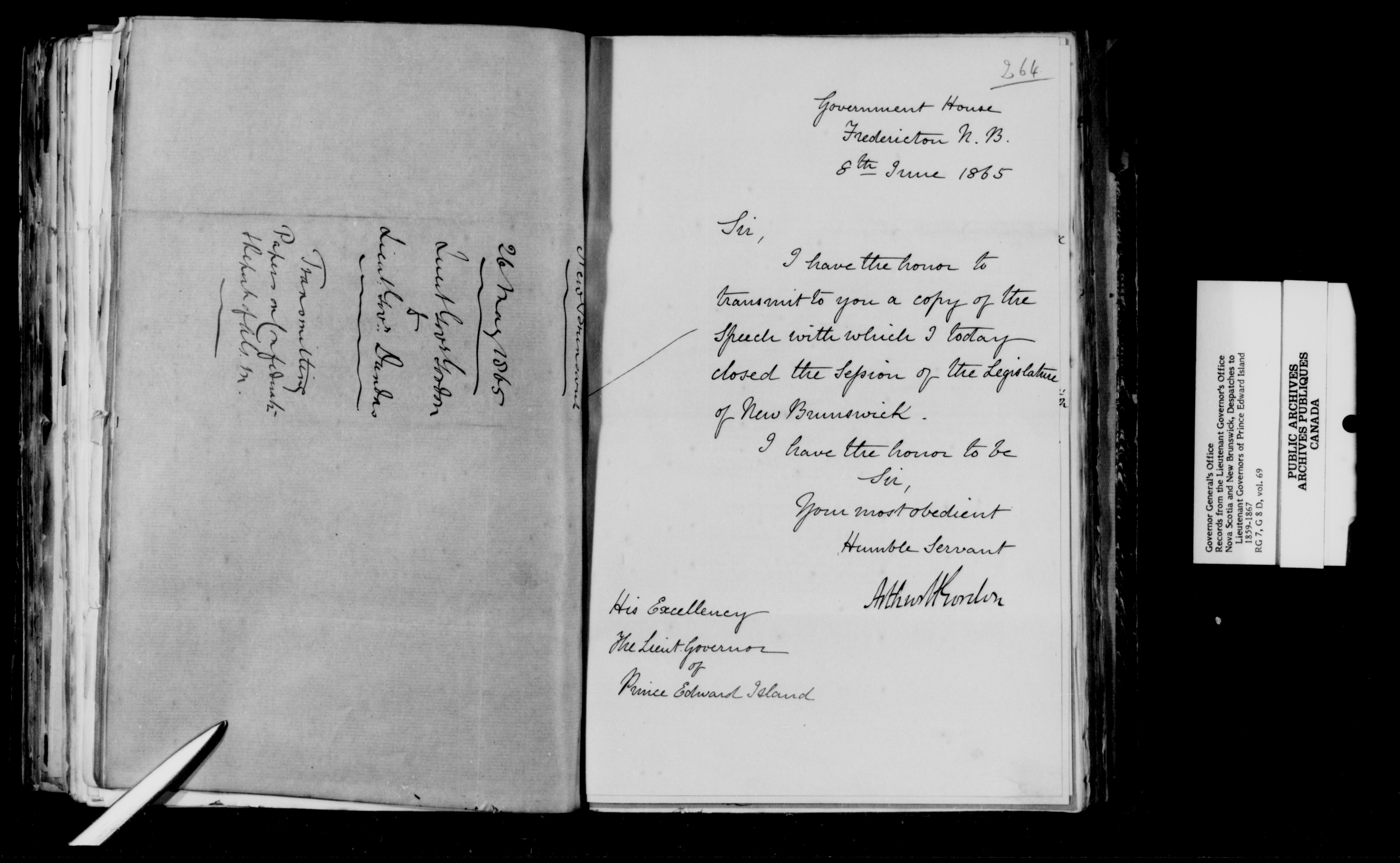 Despatches received [by the Lieutenant Governor's Office of Prince Edward Island] : H-945