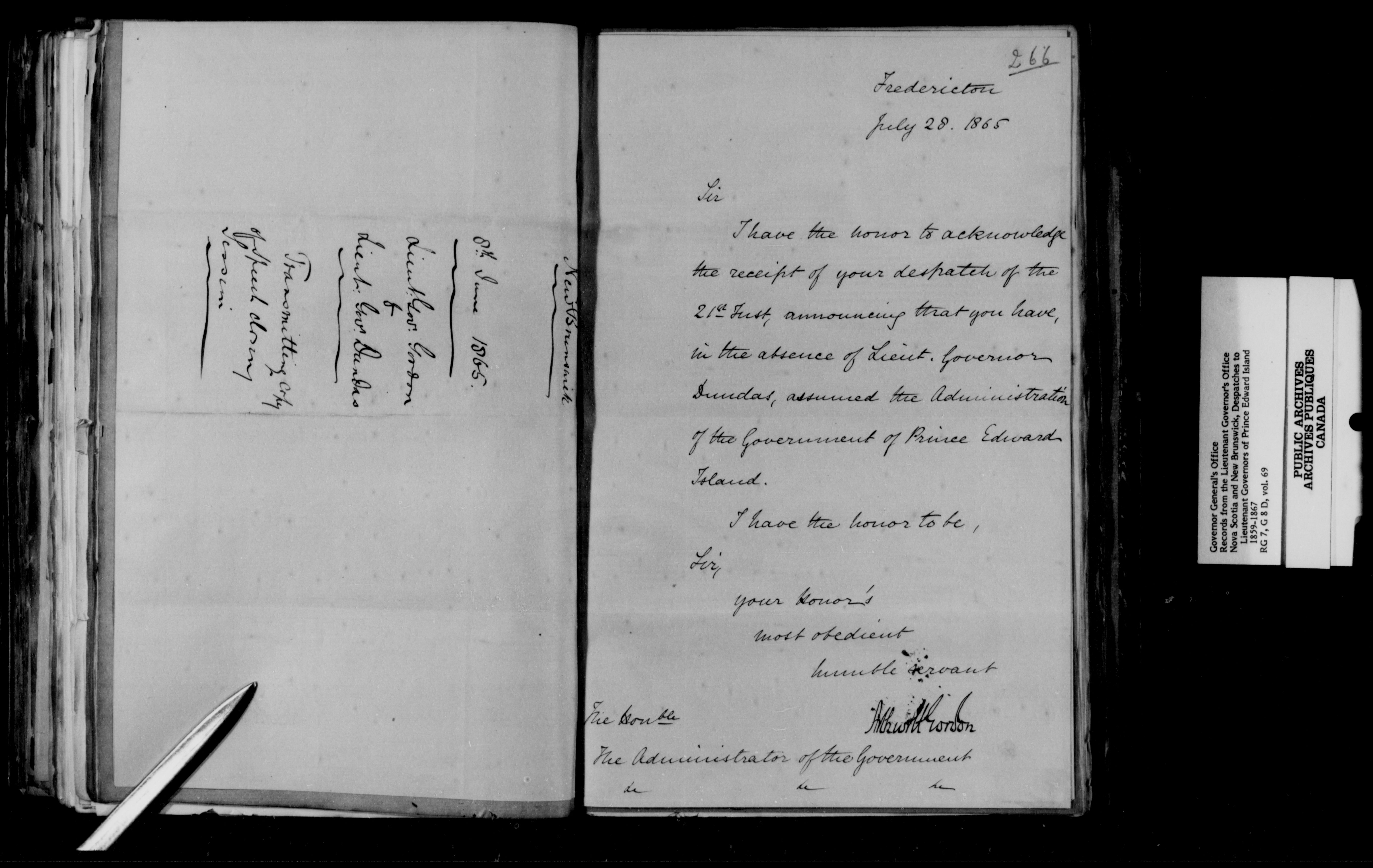 Despatches received [by the Lieutenant Governor's Office of Prince Edward Island] - H-945