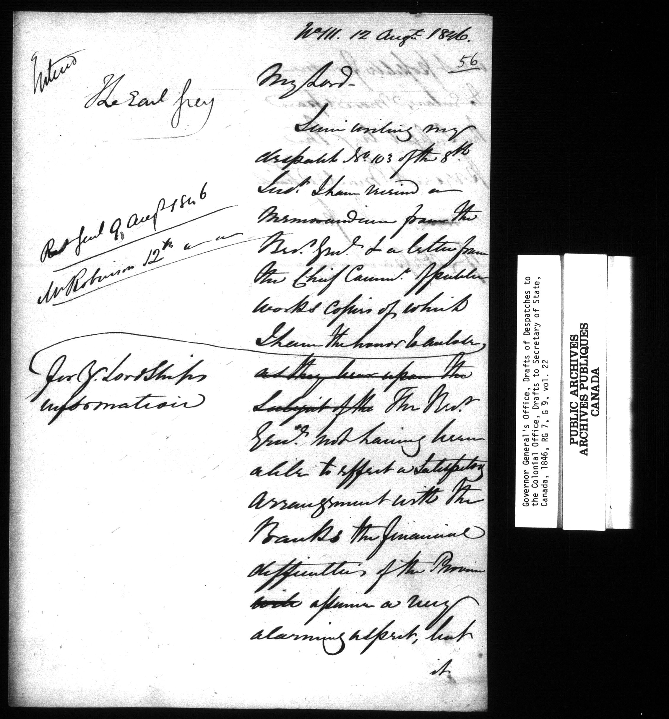 Governor General's Office, drafts of Despatches to the Secretary of State [Canada] - 949