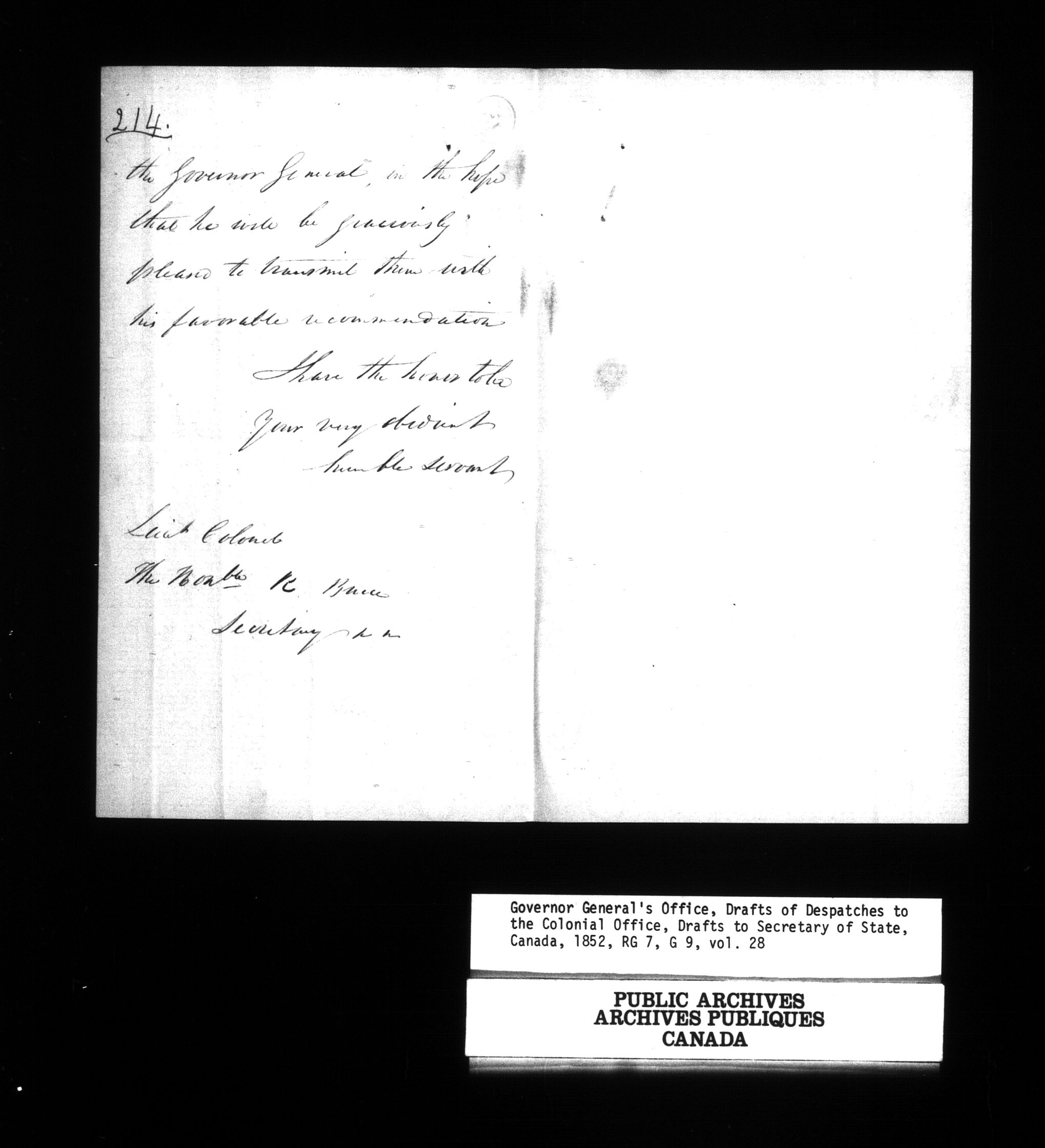Governor General's Office, drafts of Despatches to the Secretary of State [Canada] : H-950