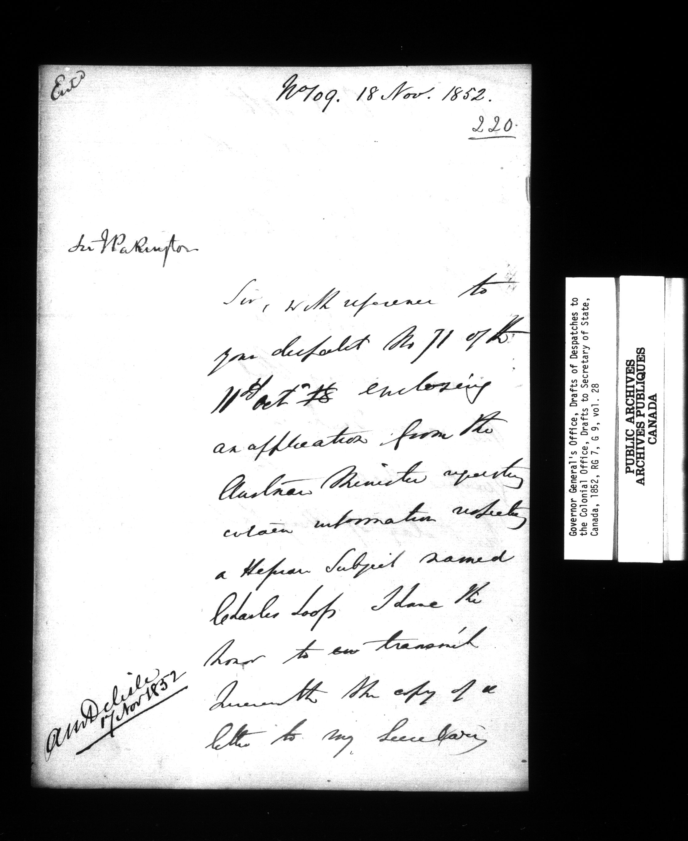Governor General's Office, drafts of Despatches to the Secretary of State [Canada] - 950