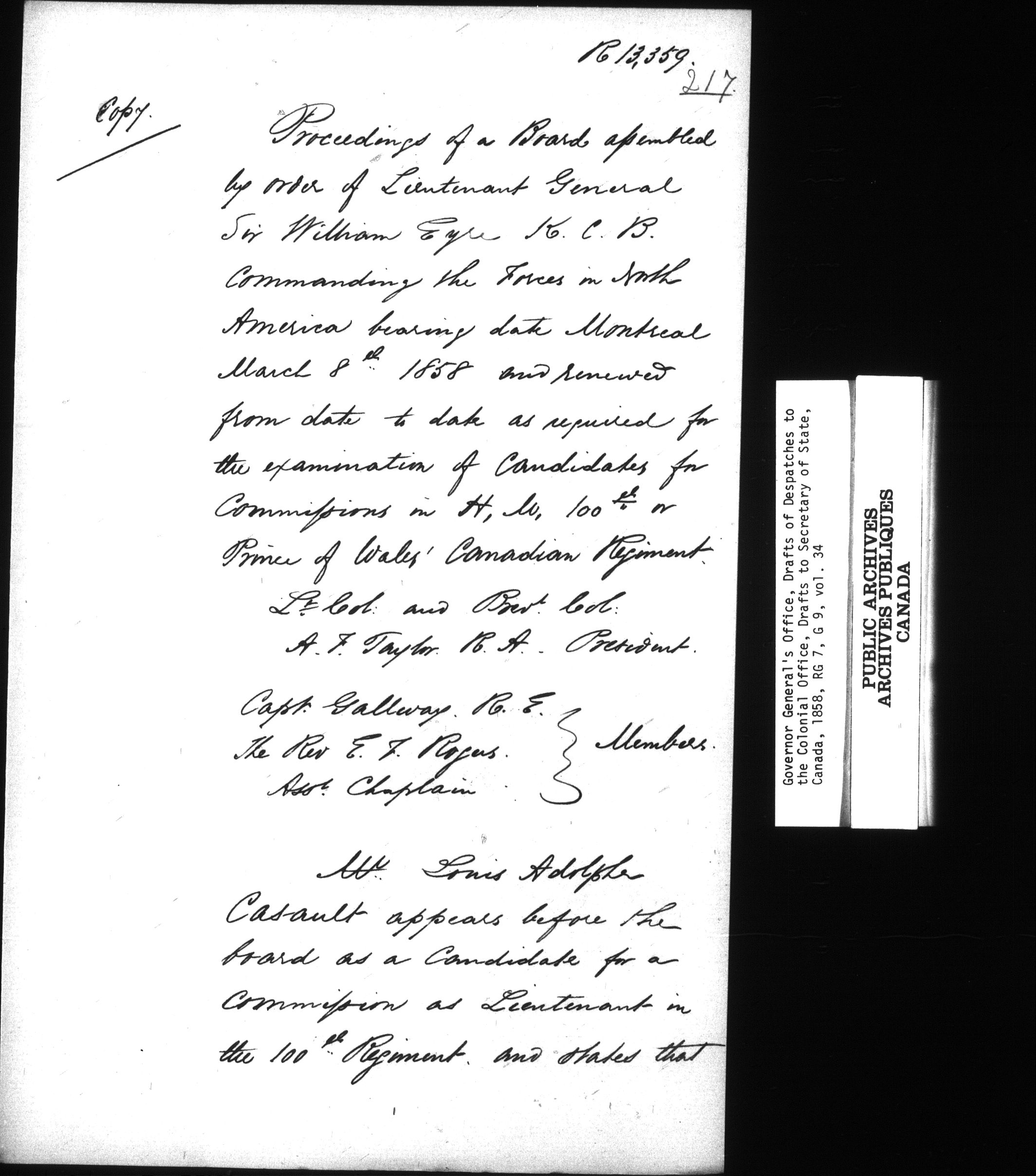Governor General's Office, drafts of Despatches to the Secretary of State [Canada] - 951