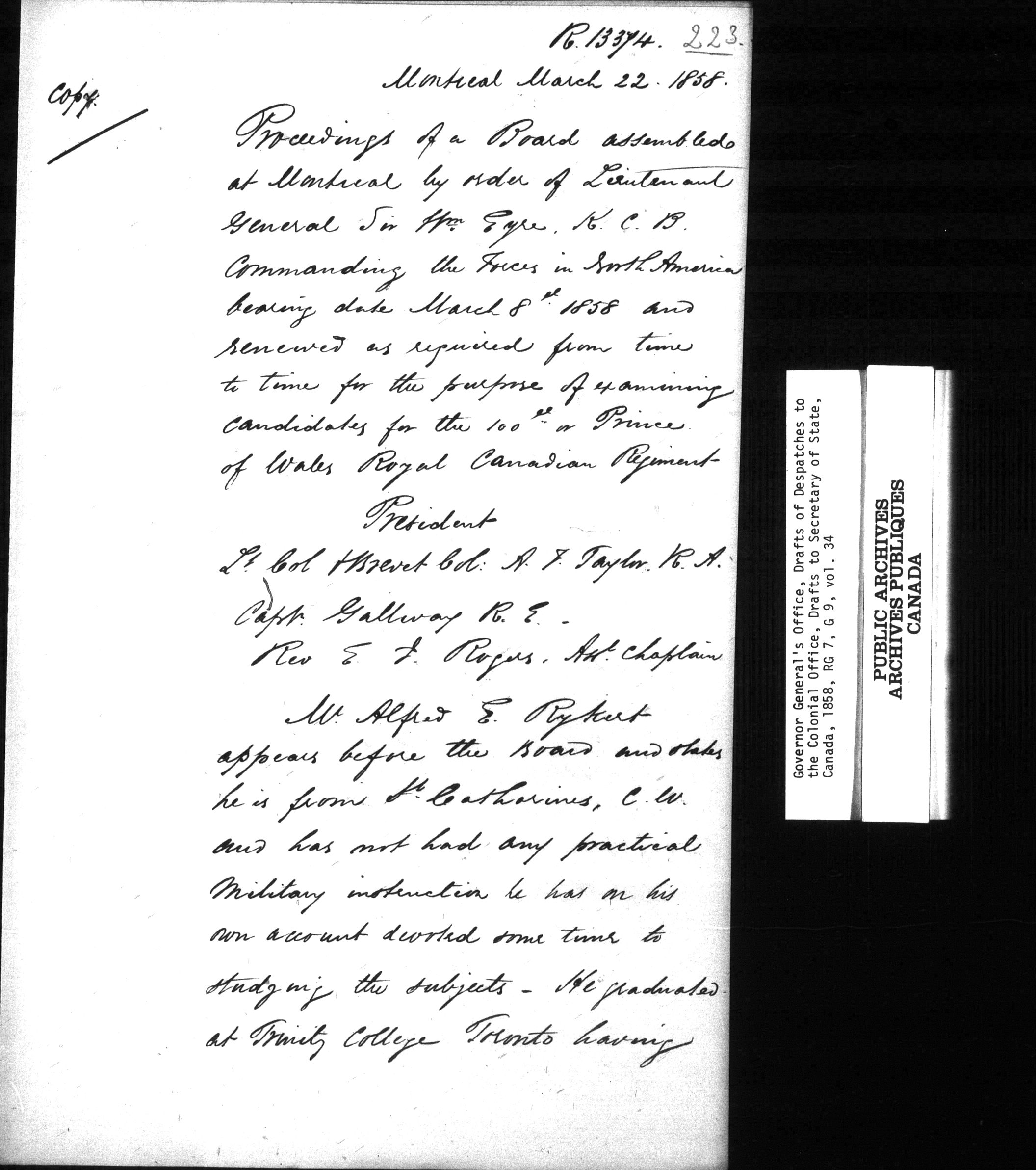 Governor General's Office, drafts of Despatches to the Secretary of State [Canada] - 951