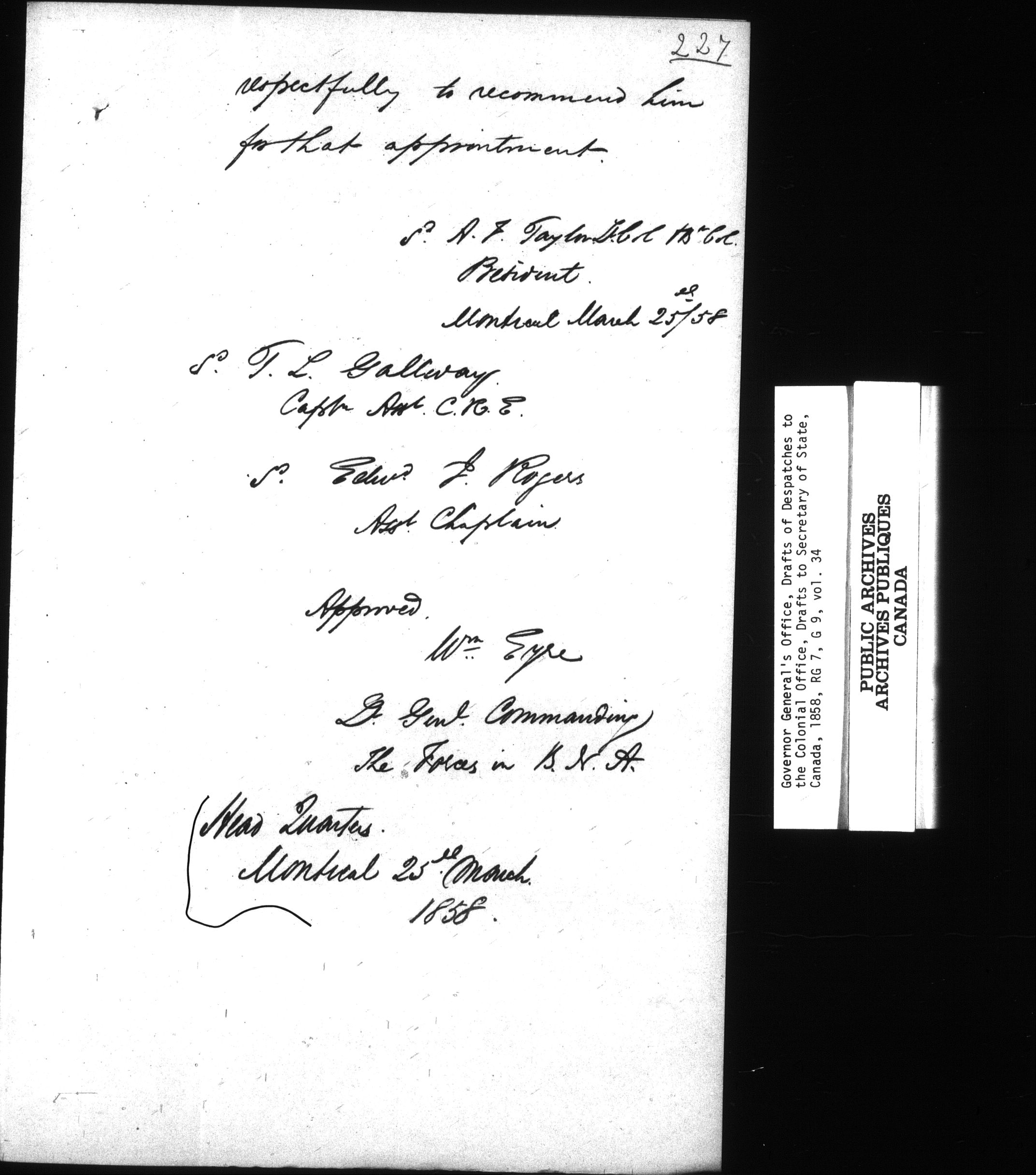 Governor General's Office, drafts of Despatches to the Secretary of State [Canada] - 951