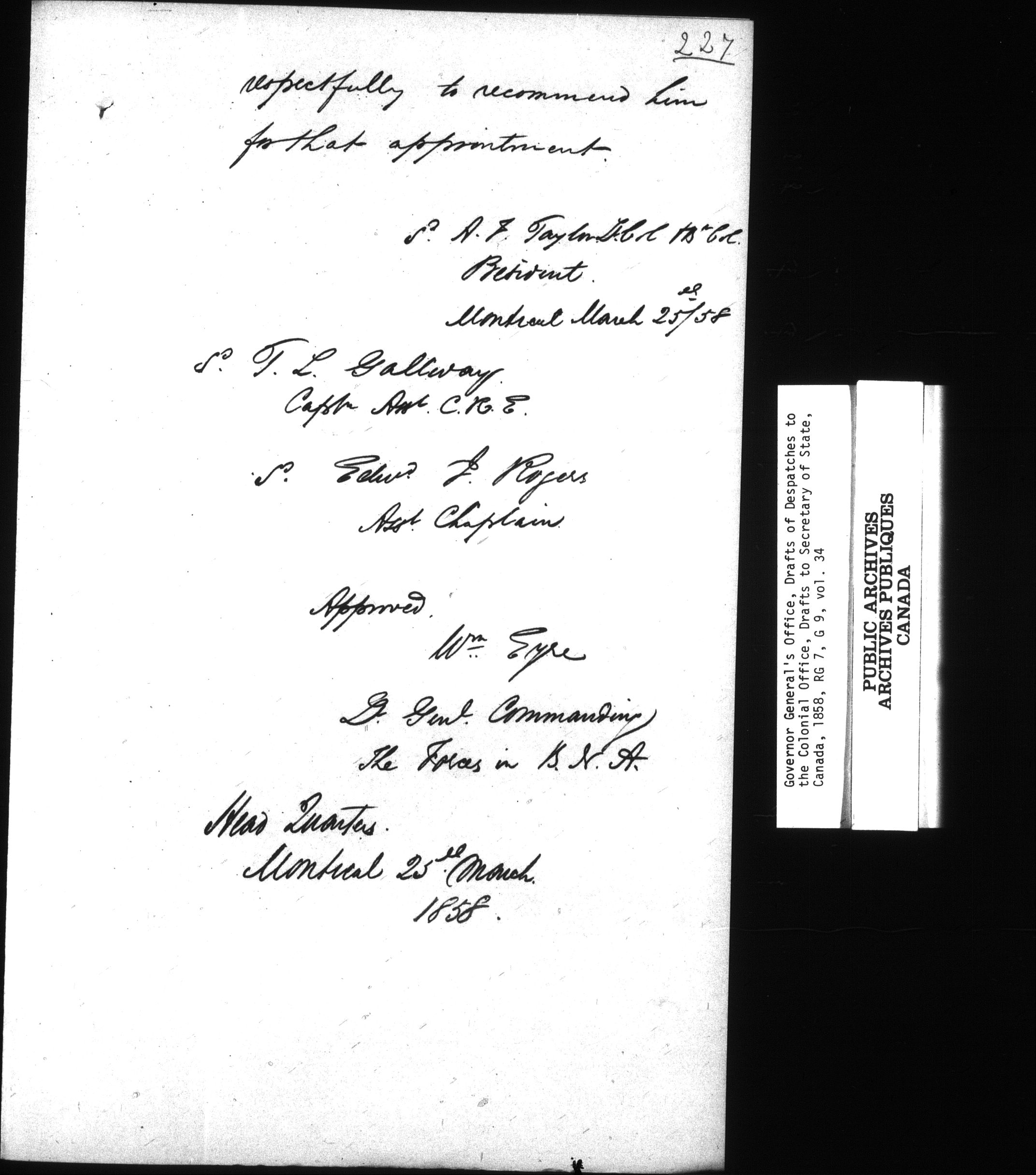 Governor General's Office, drafts of Despatches to the Secretary of State [Canada] - 951