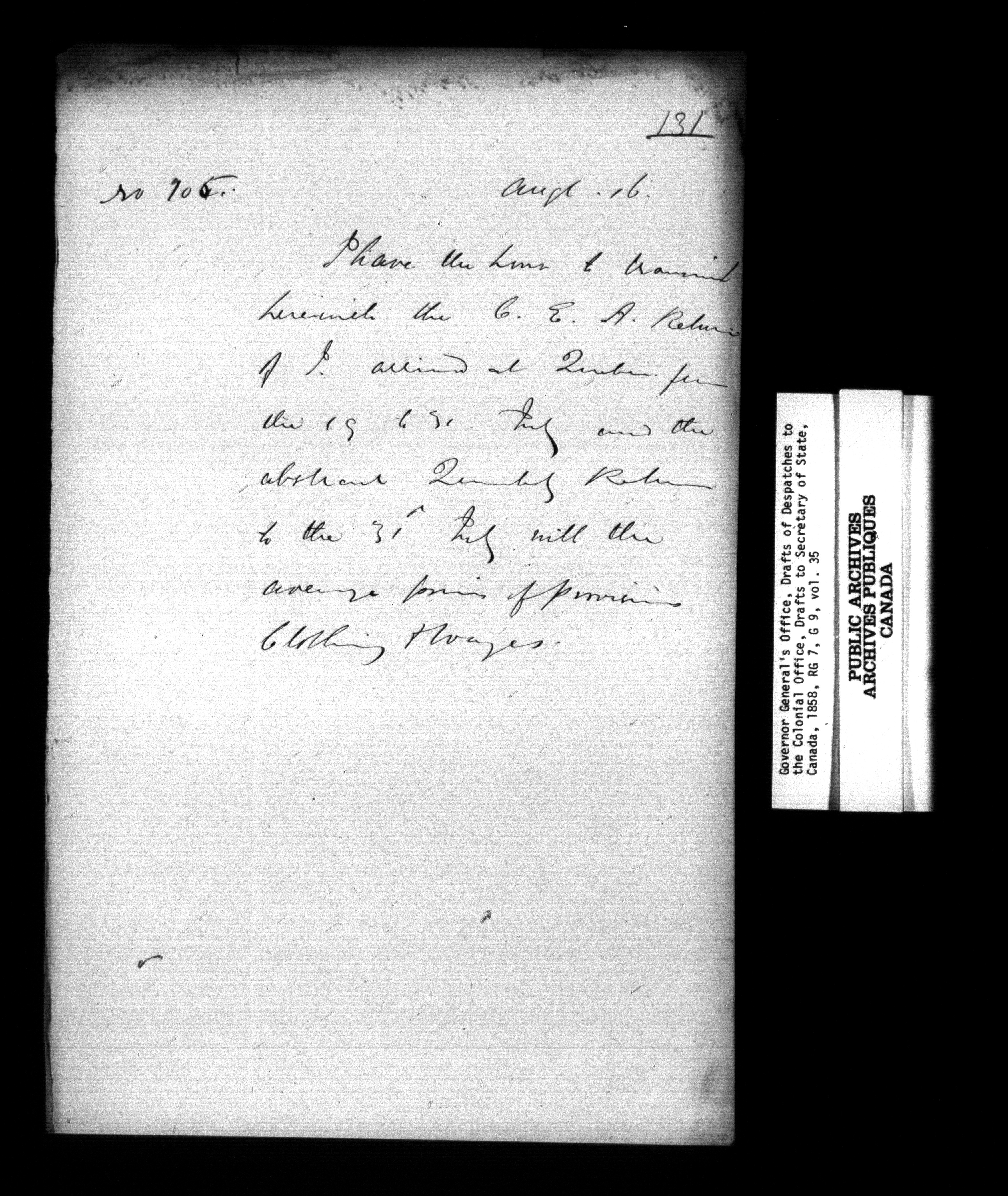 Governor General's Office, drafts of Despatches to the Secretary of State [Canada] - 952