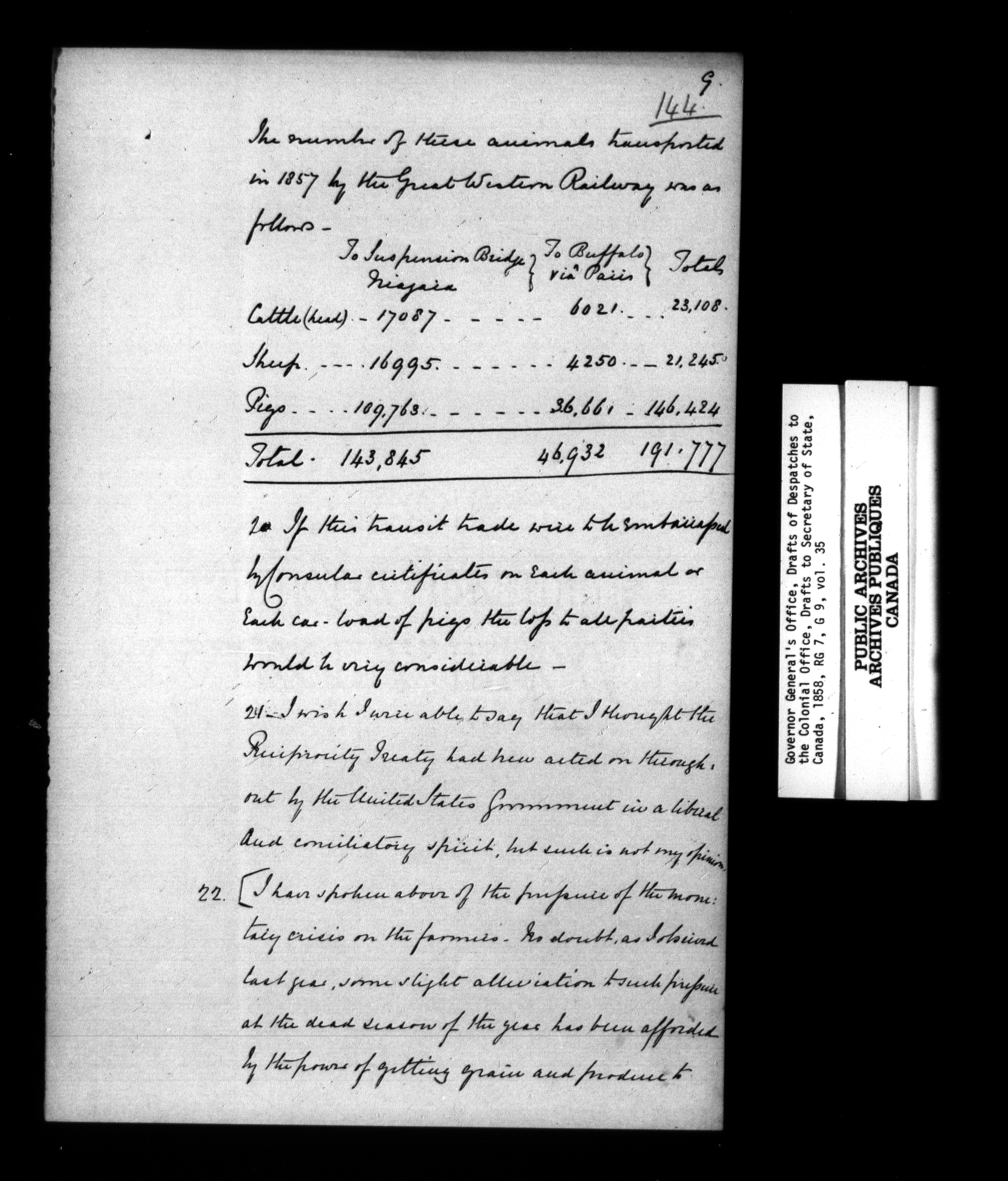 Governor General's Office, drafts of Despatches to the Secretary of State [Canada] - 952