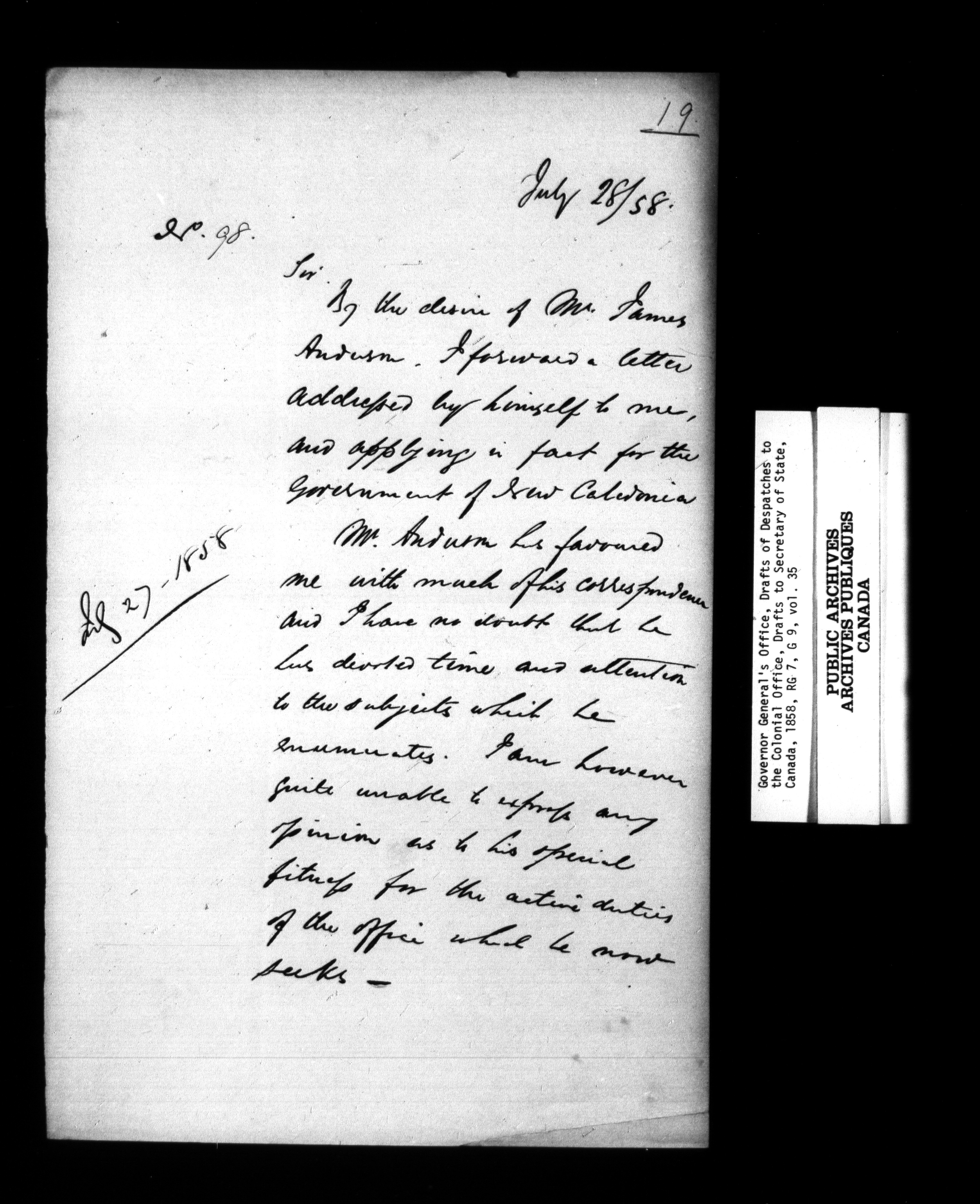 Governor General's Office, drafts of Despatches to the Secretary of State [Canada] - 952