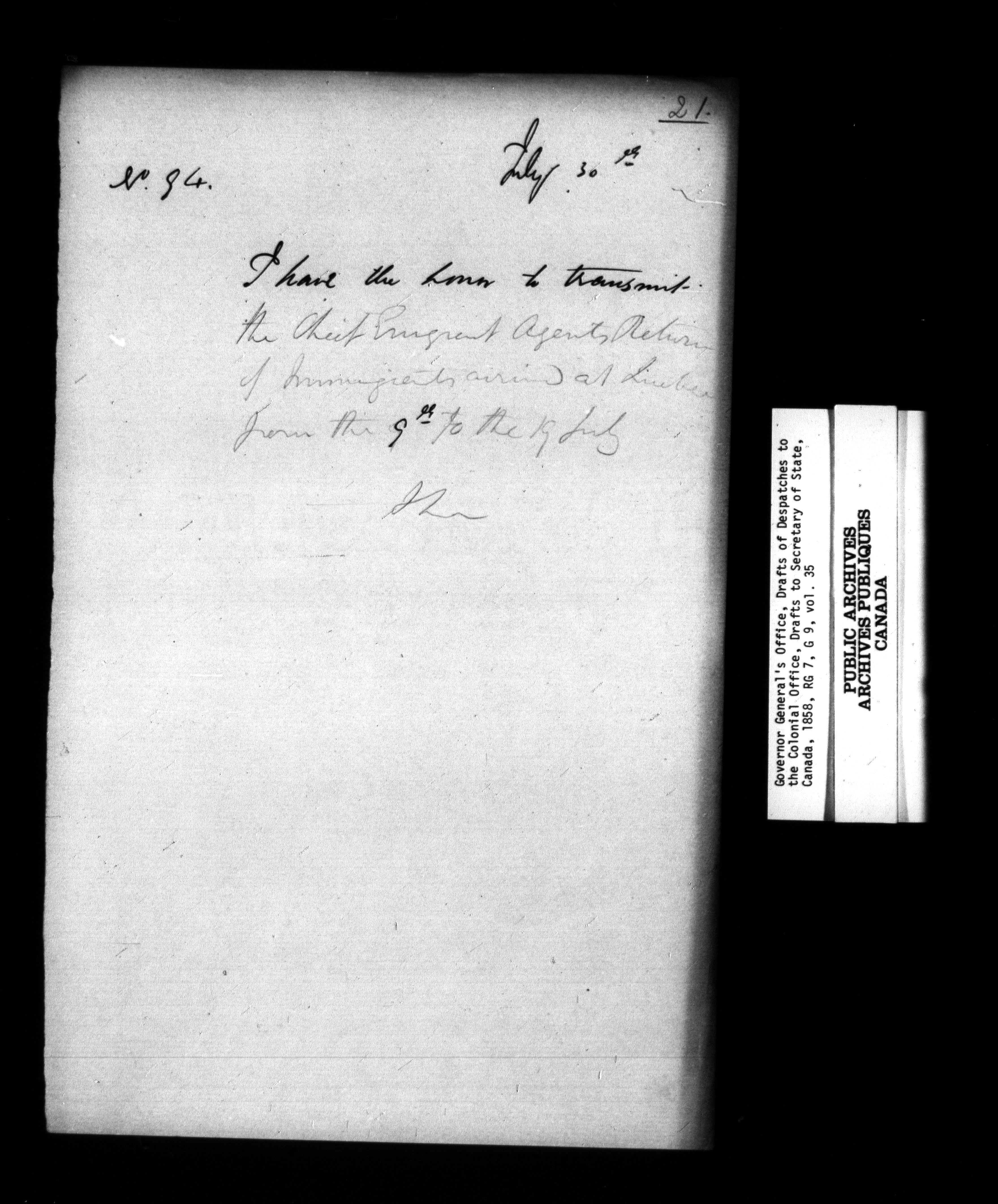Governor General's Office, drafts of Despatches to the Secretary of State [Canada] - 952