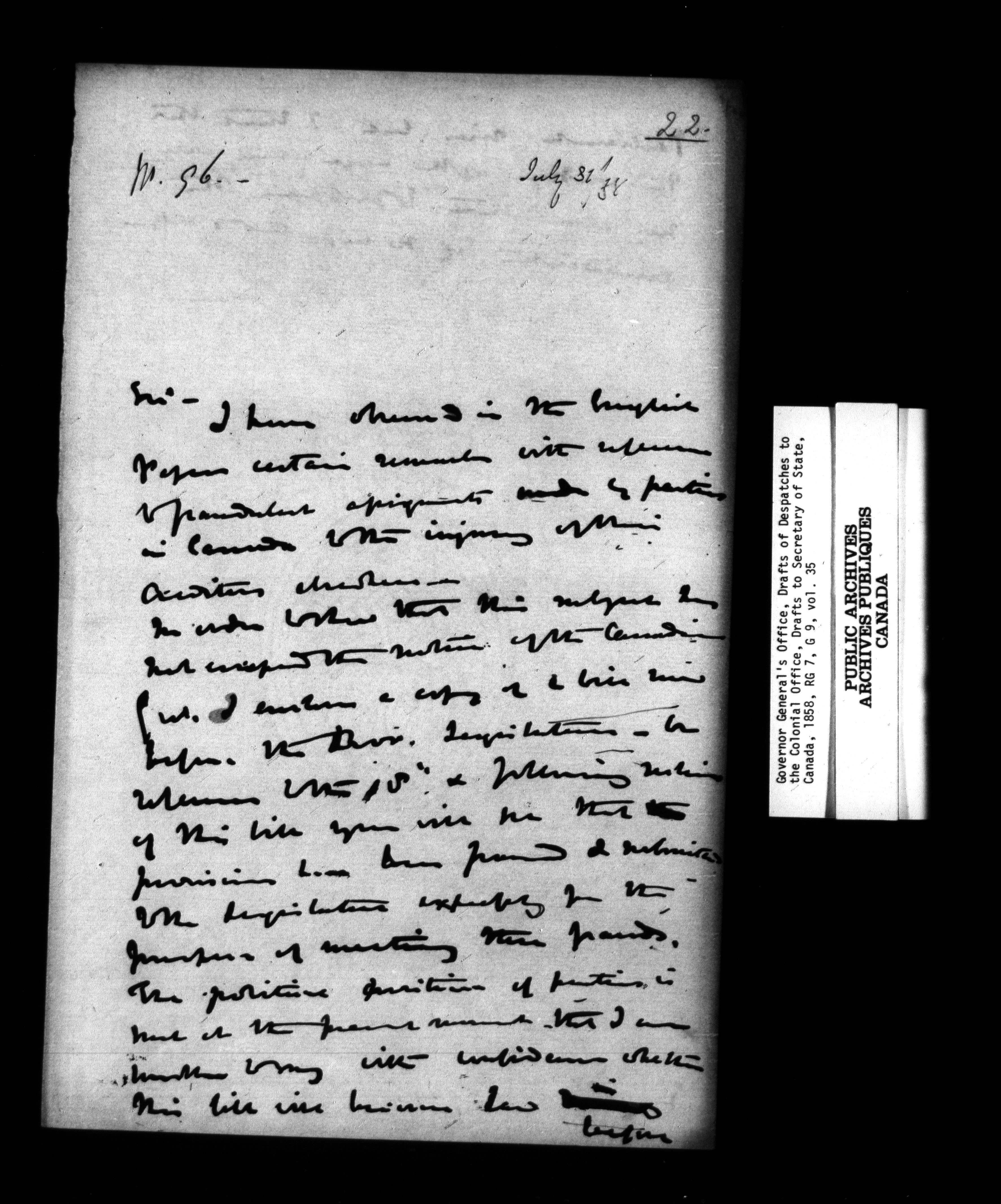 Governor General's Office, drafts of Despatches to the Secretary of State [Canada] - 952