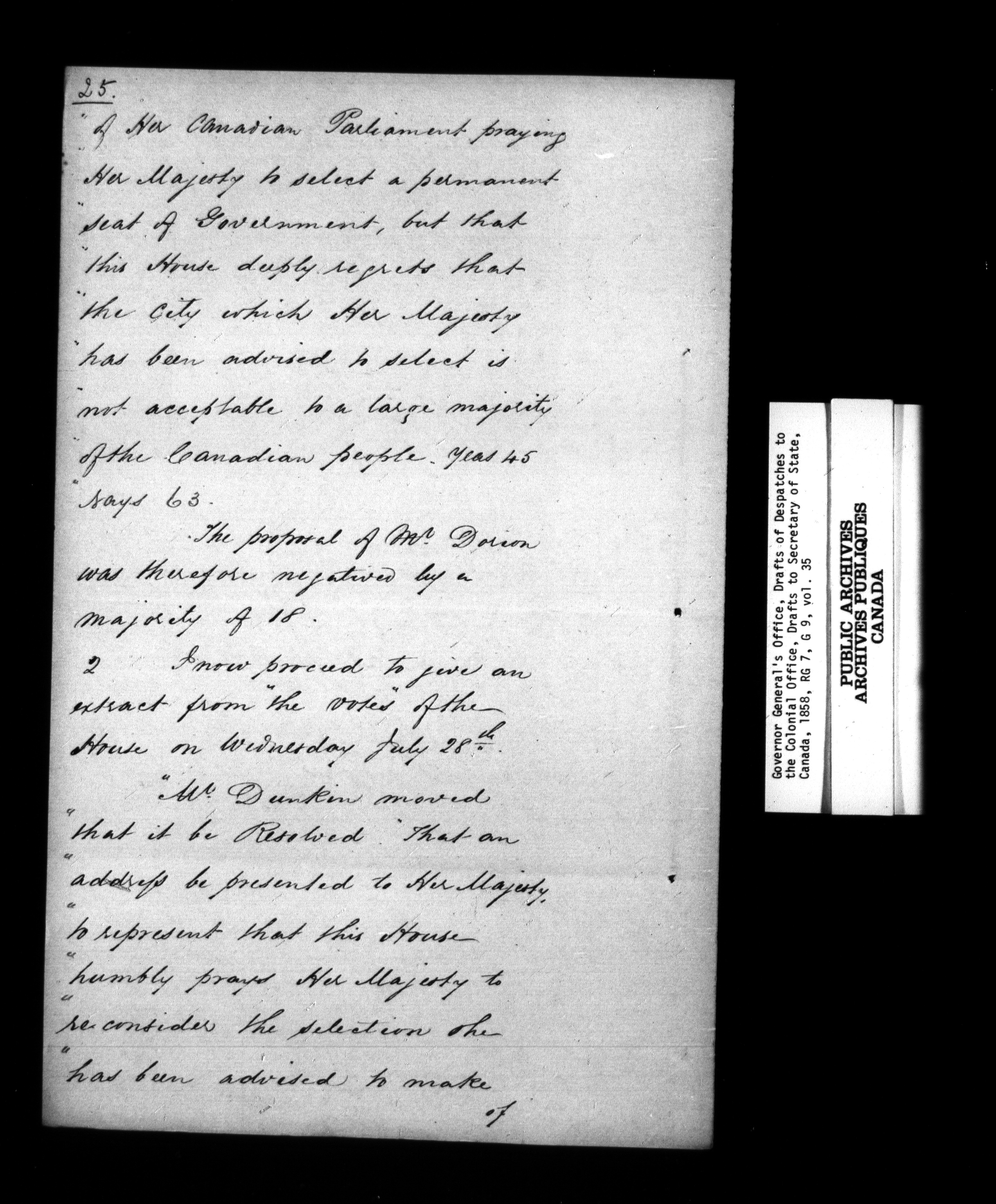 Governor General's Office, drafts of Despatches to the Secretary of State [Canada] - 952