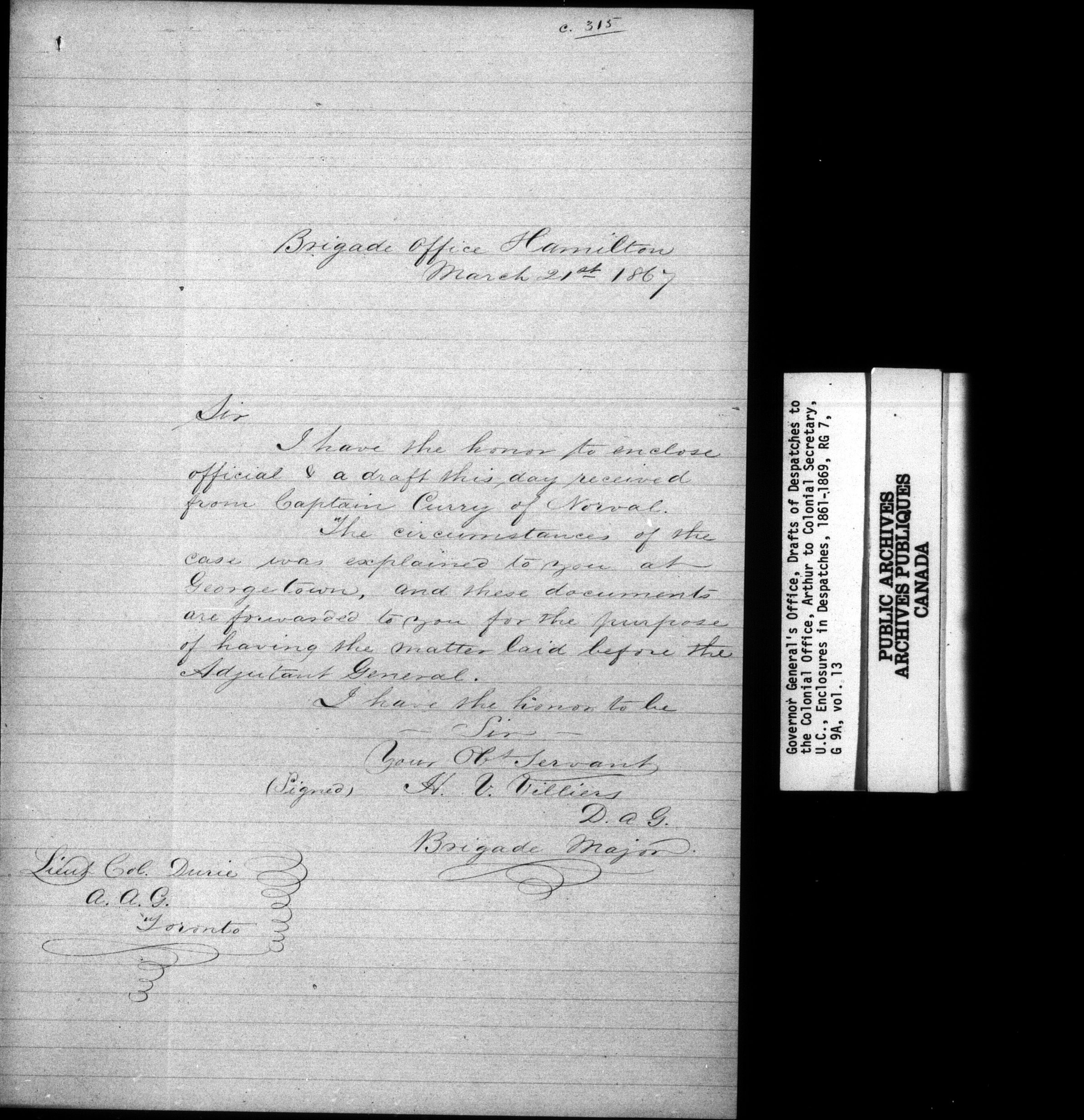 Drafts of enclosures to despatches from the Lieutenant Governor, Upper Canada to the Colonial Office : H-957