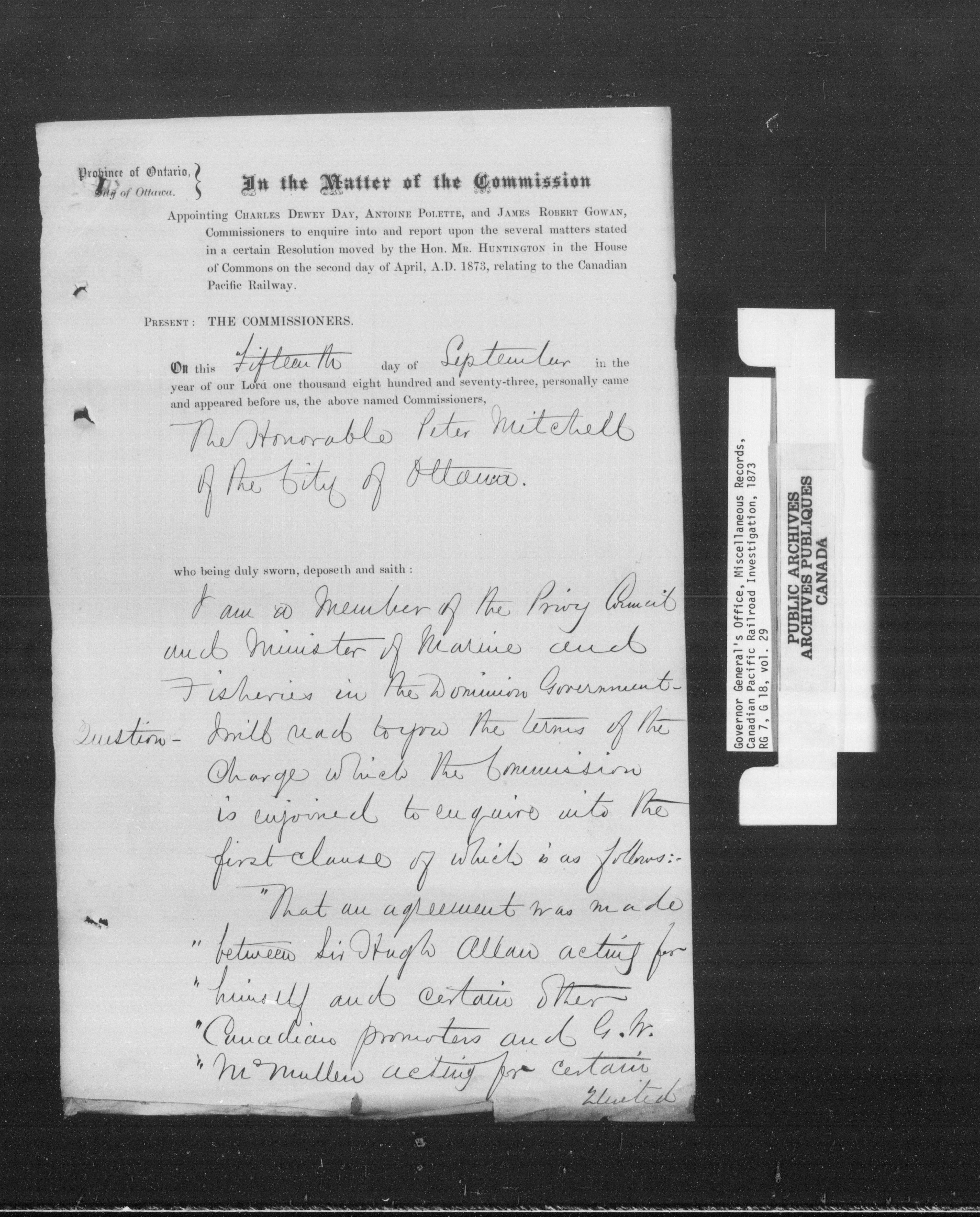 Subject files of the Offices of the Governor-in-Chief at Quebec, the Governor-in-Chief of the Province of Canada and the Governor General of the Dominion of Canada : H-962