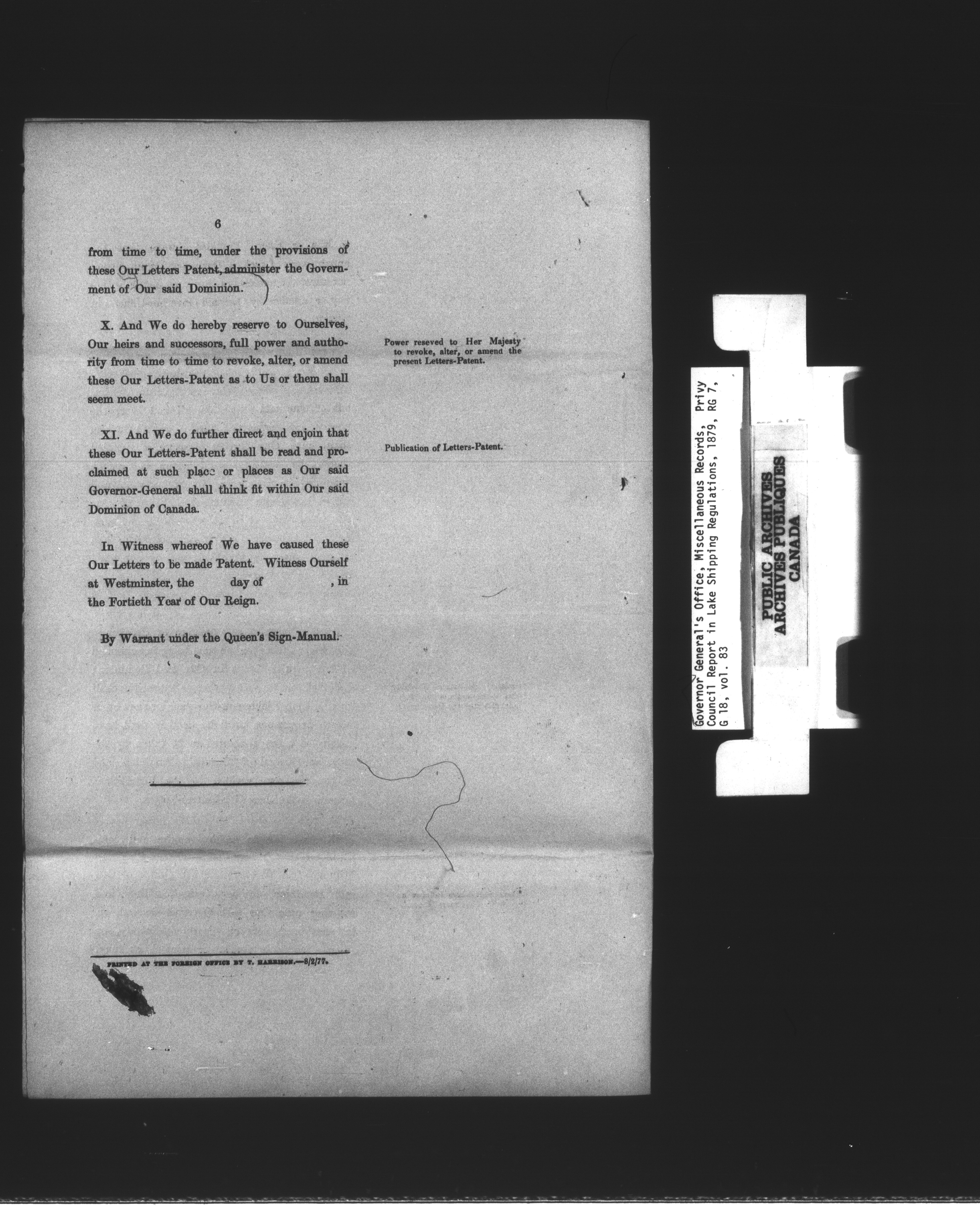 Subject files of the Offices of the Governor-in-Chief at Quebec, the Governor-in-Chief of the Province of Canada and the Governor General of the Dominion of Canada : H-965