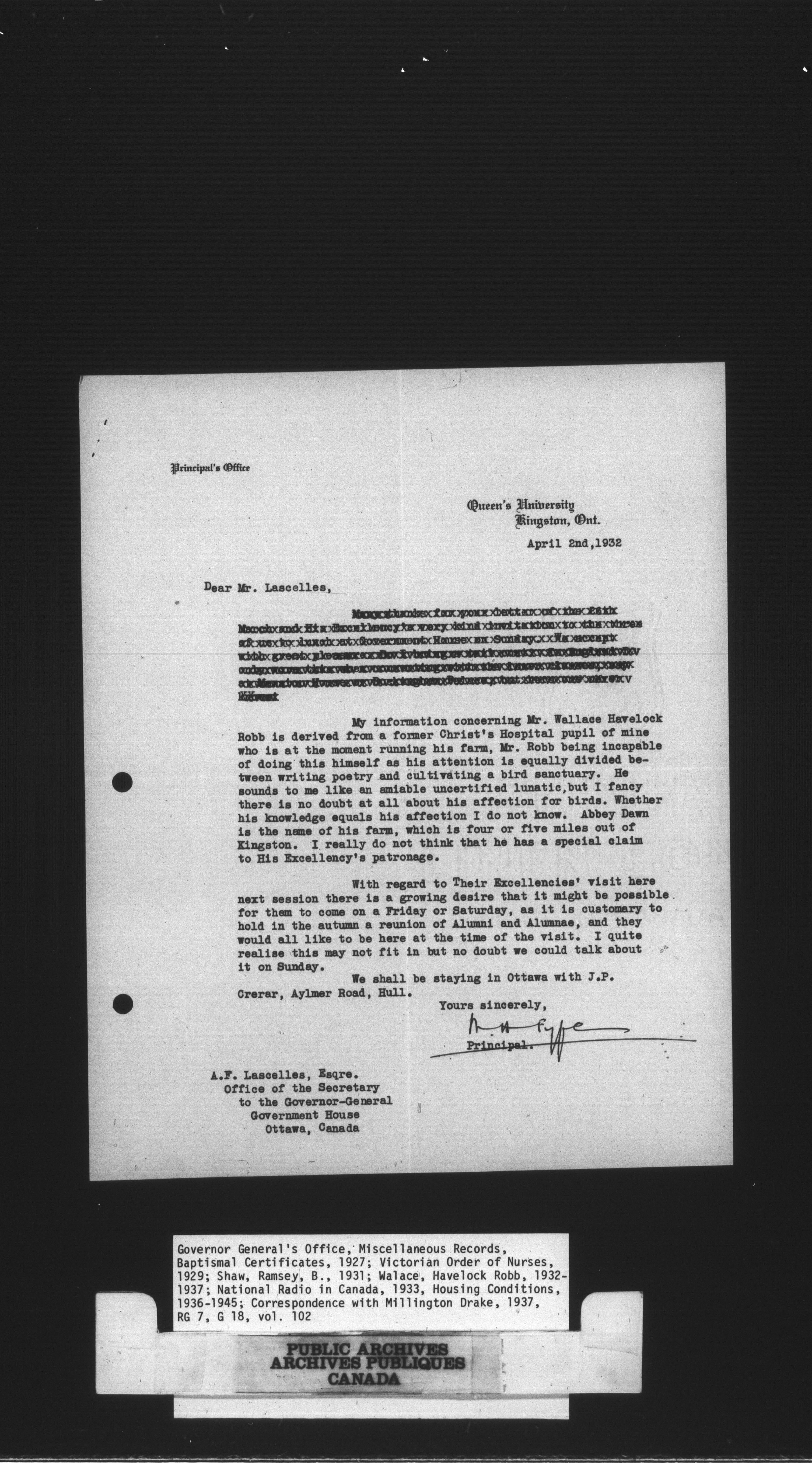 Subject files of the Offices of the Governor-in-Chief at Quebec, the Governor-in-Chief of the Province of Canada and the Governor General of the Dominion of Canada : H-966