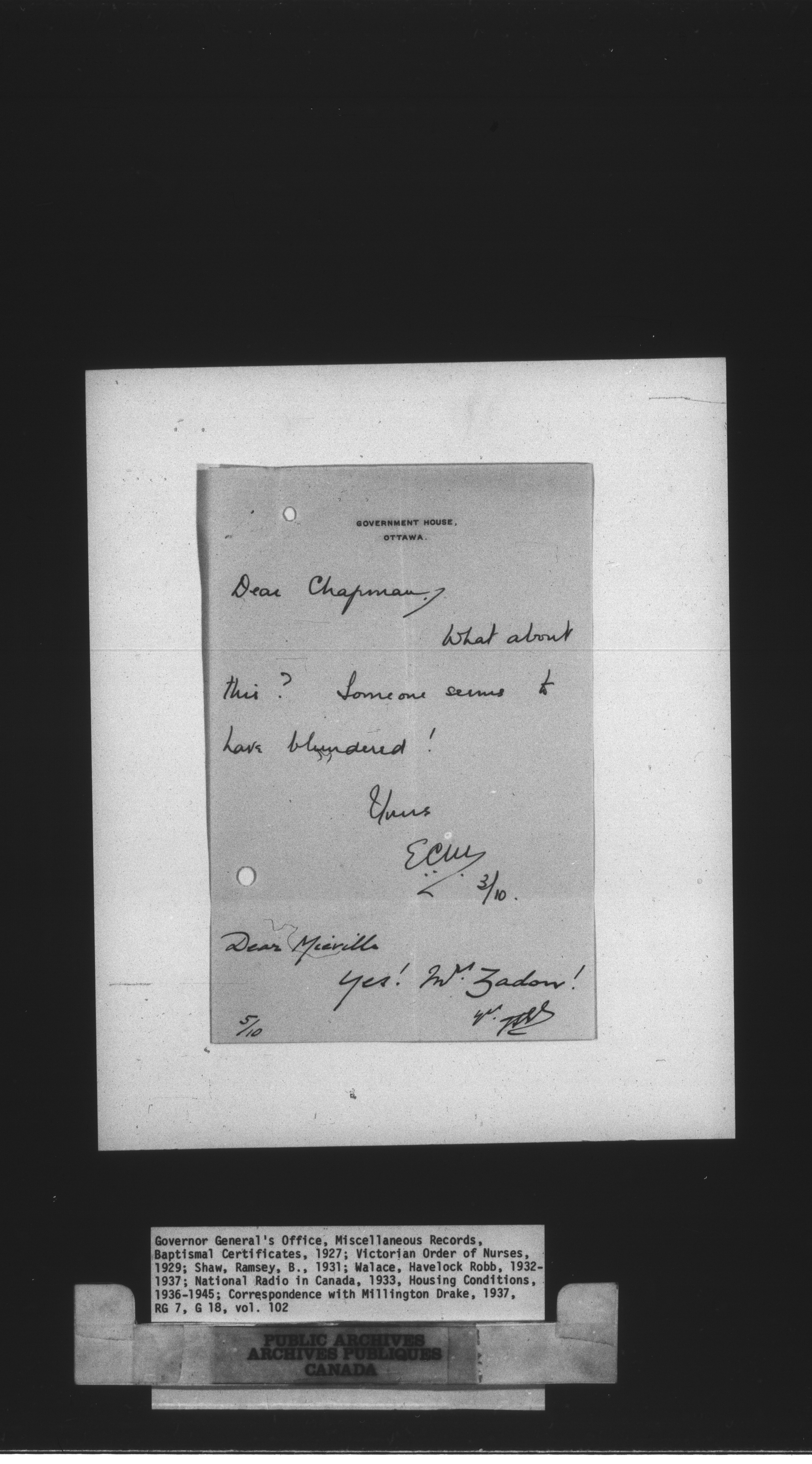 Subject files of the Offices of the Governor-in-Chief at Quebec, the Governor-in-Chief of the Province of Canada and the Governor General of the Dominion of Canada : H-966