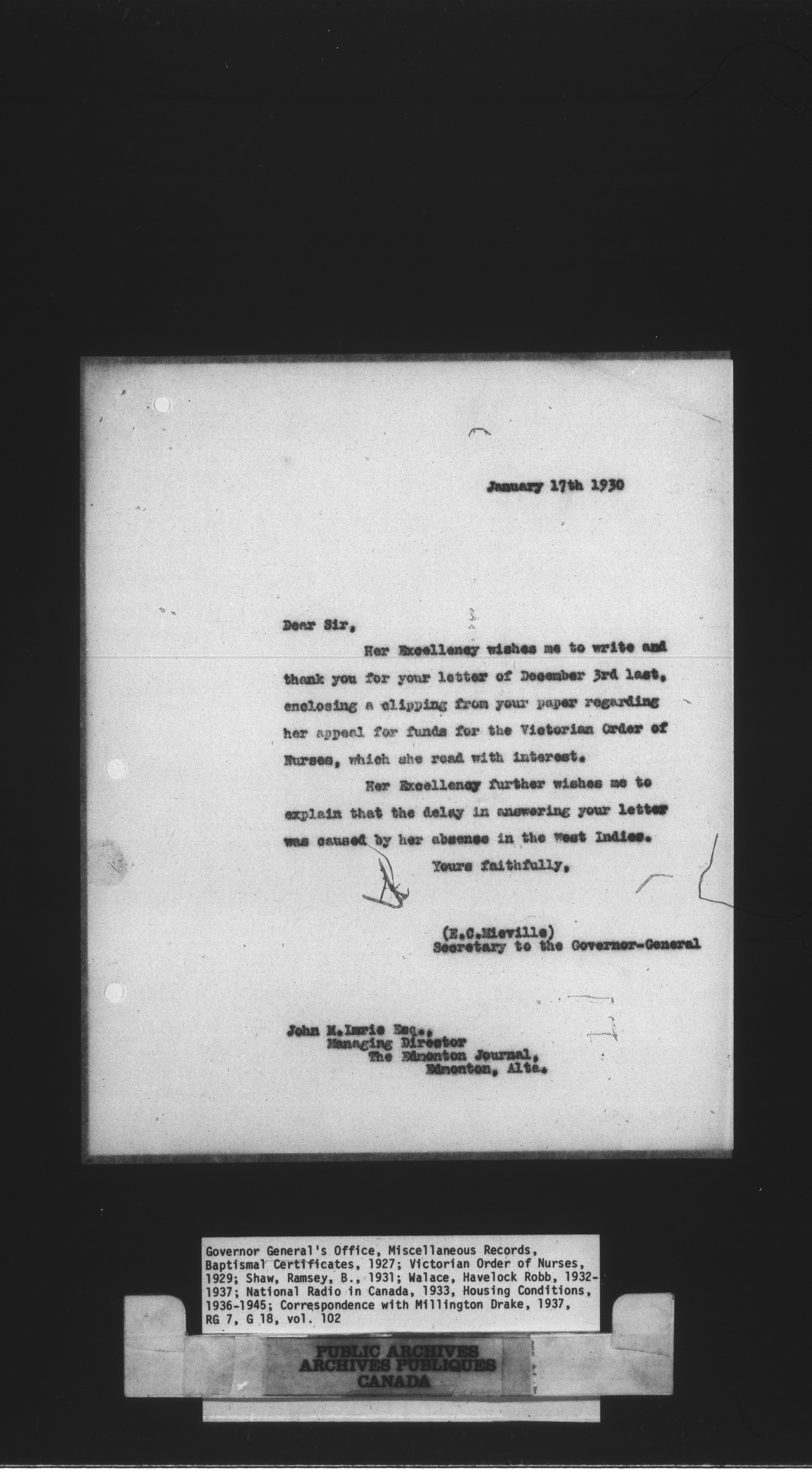 Subject files of the Offices of the Governor-in-Chief at Quebec, the Governor-in-Chief of the Province of Canada and the Governor General of the Dominion of Canada : H-966