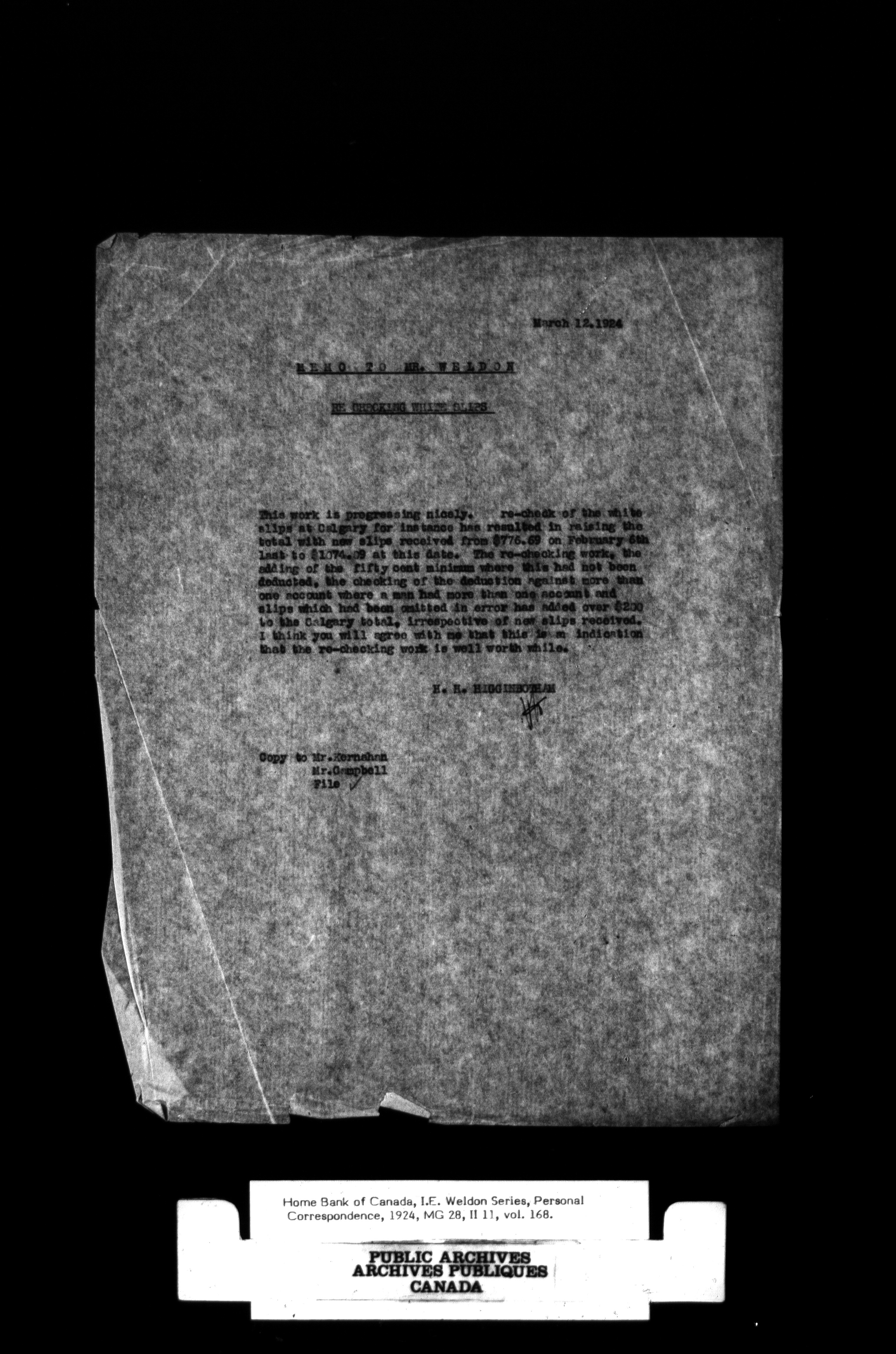 Home Bank of Canada : Beauharnois, Correspondence - 971
