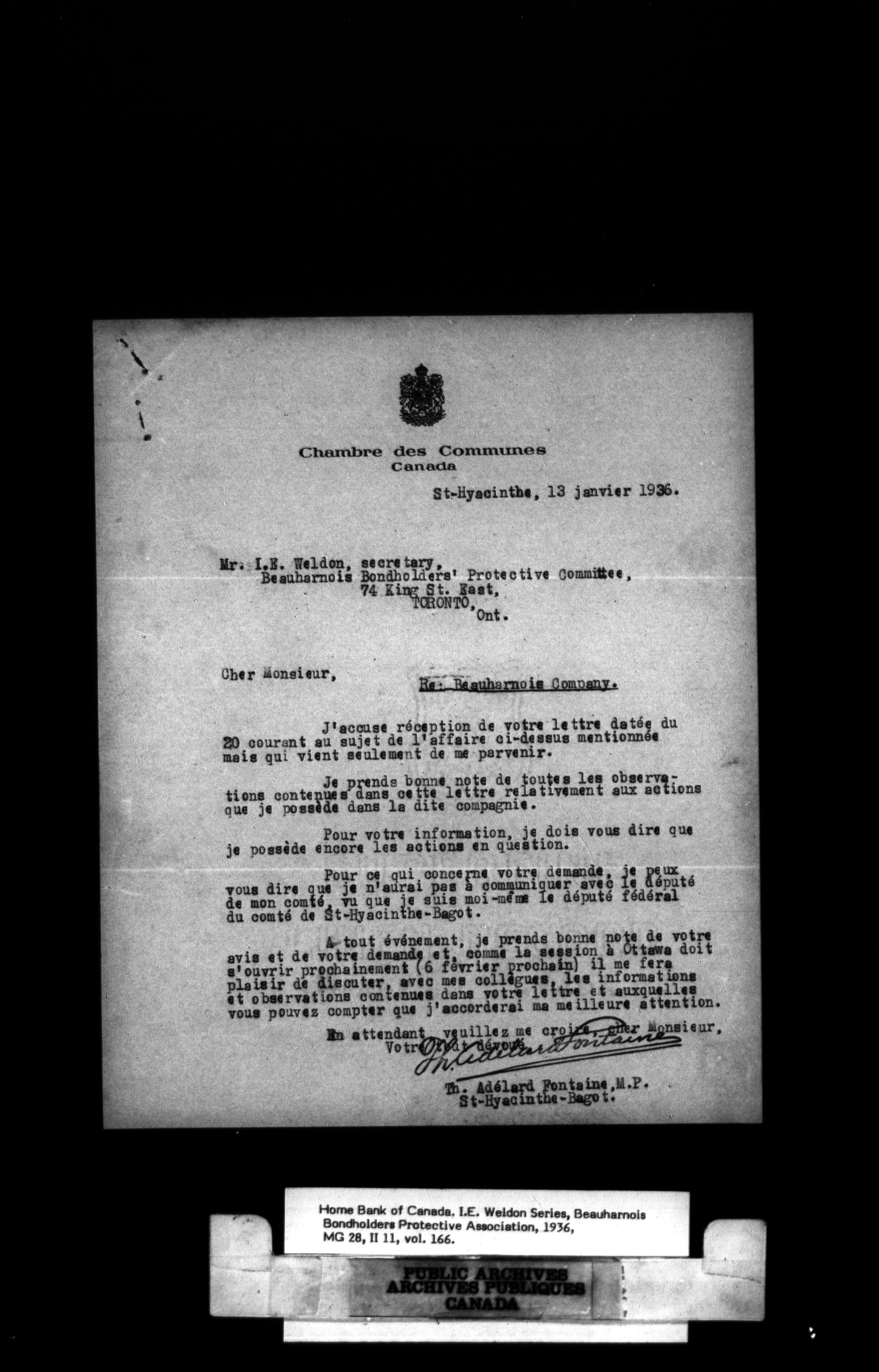 Home Bank of Canada : Beauharnois, Correspondence - 971