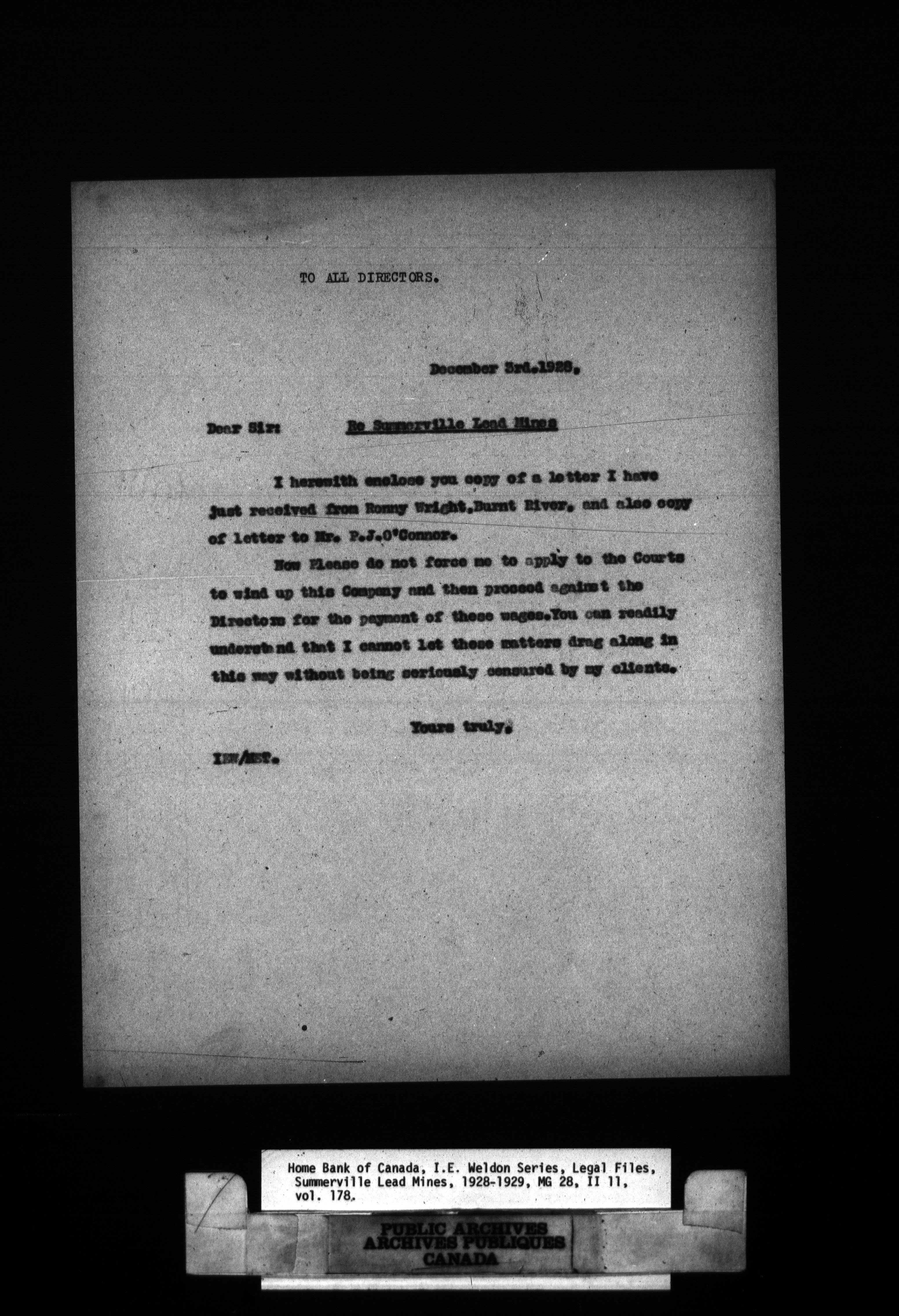 Home Bank of Canada : Legal Files and Correspondence - 978