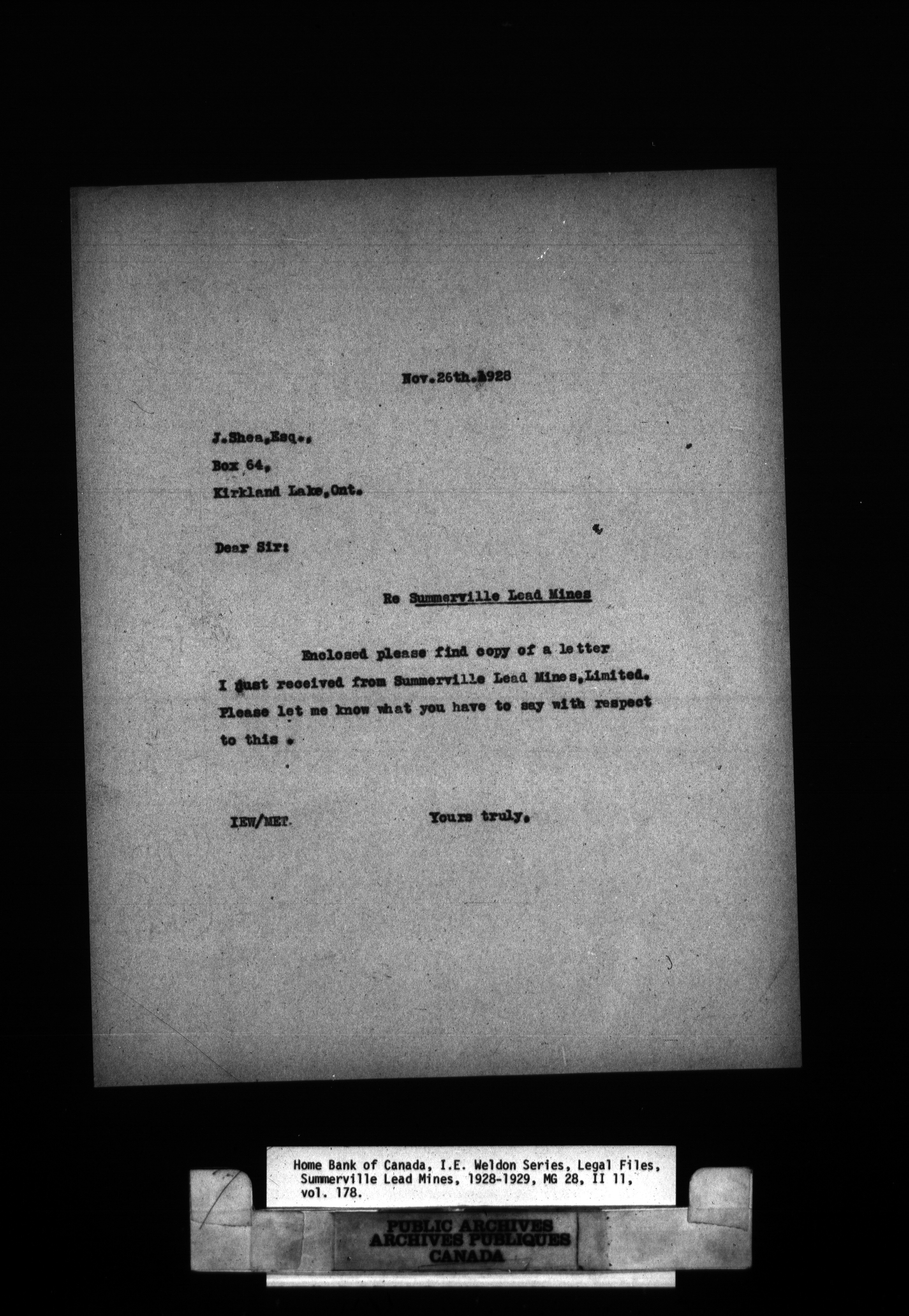 Home Bank of Canada : Legal Files and Correspondence - 978