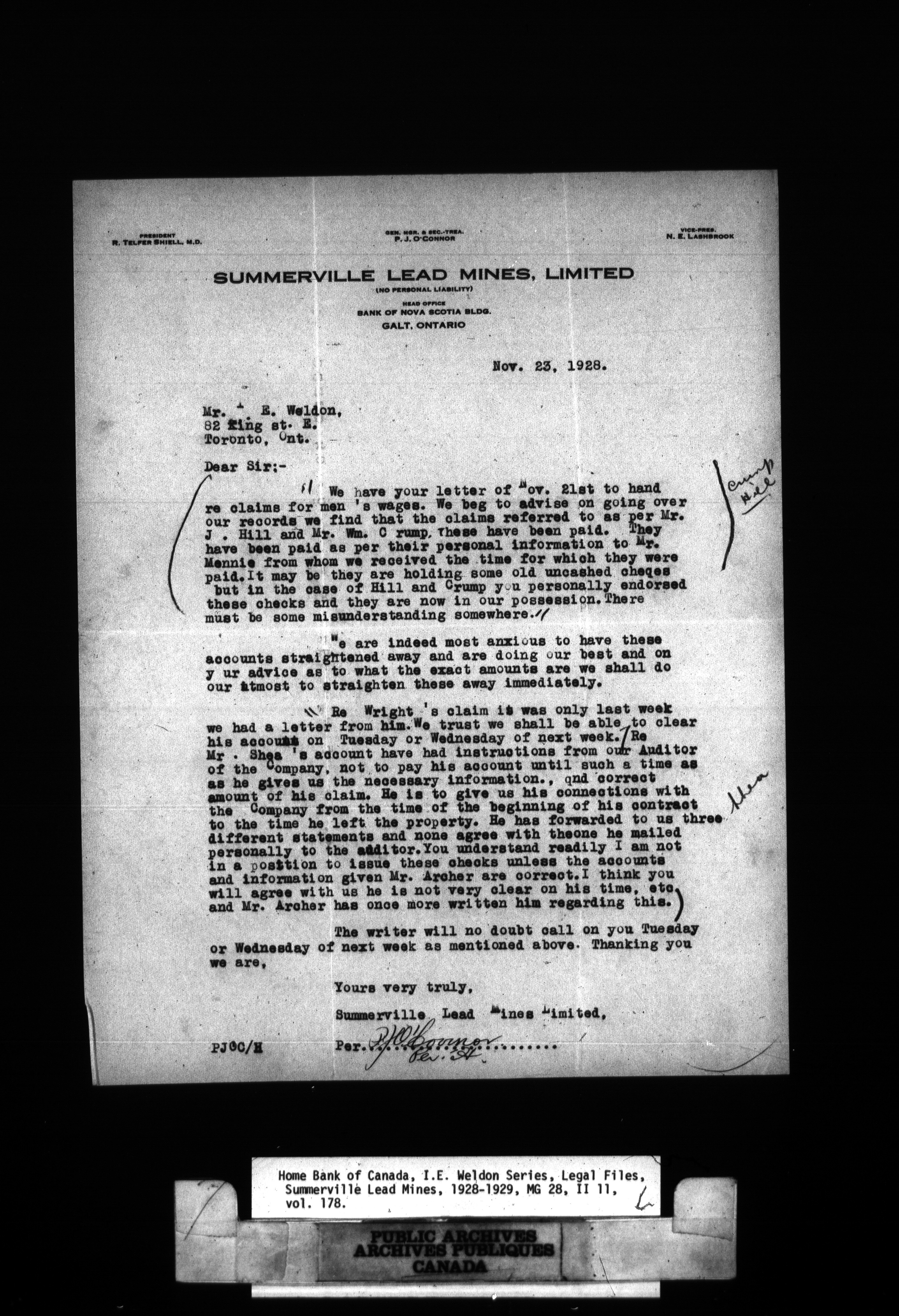 Home Bank of Canada : Legal Files and Correspondence - 978