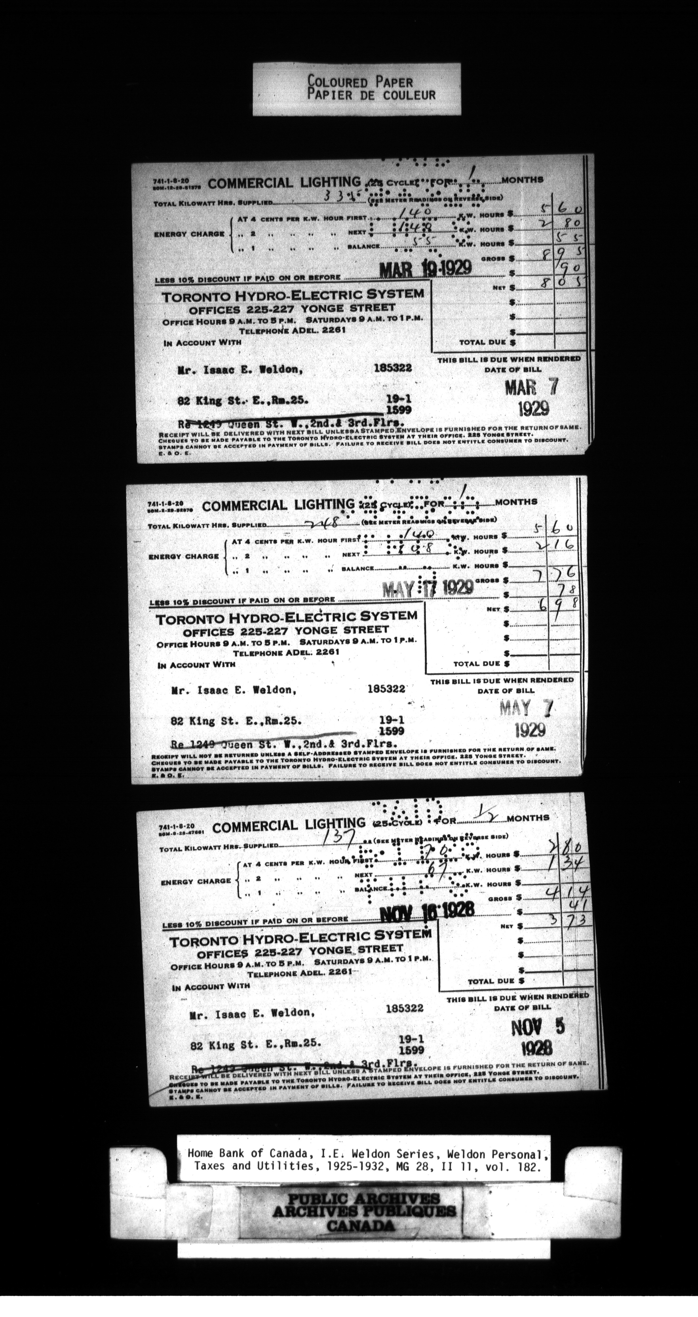 Home Bank of Canada : Correspondence and Weldon Personal - 979