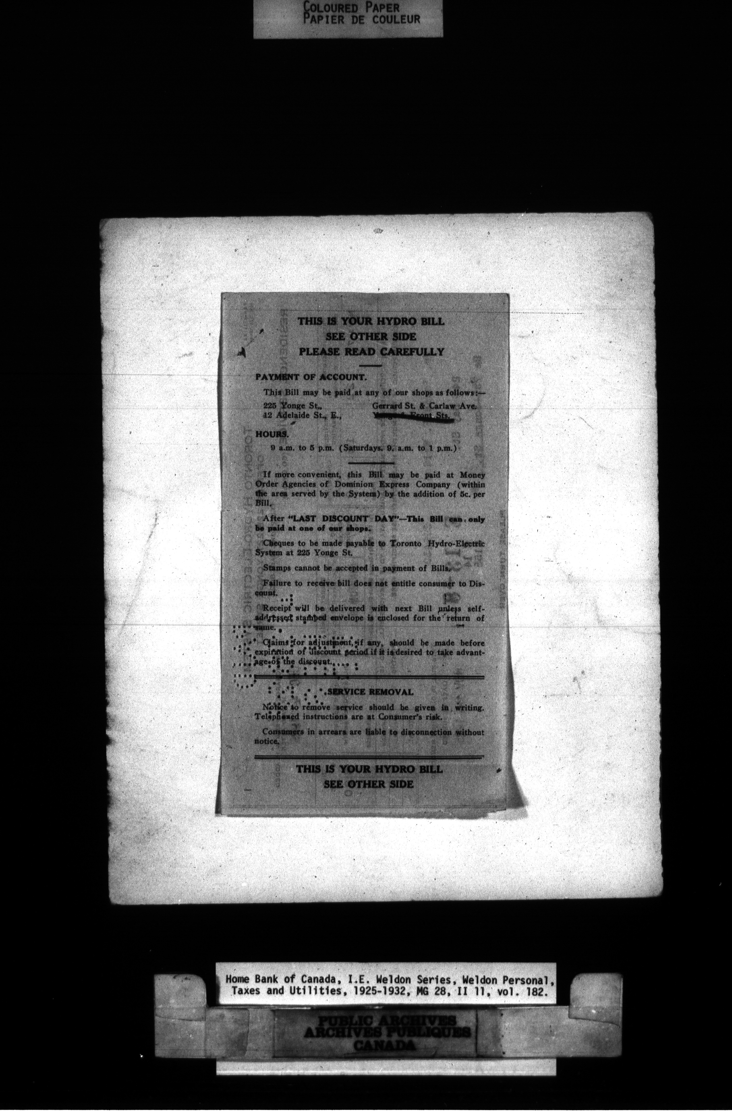 Home Bank of Canada : Correspondence and Weldon Personal - 979
