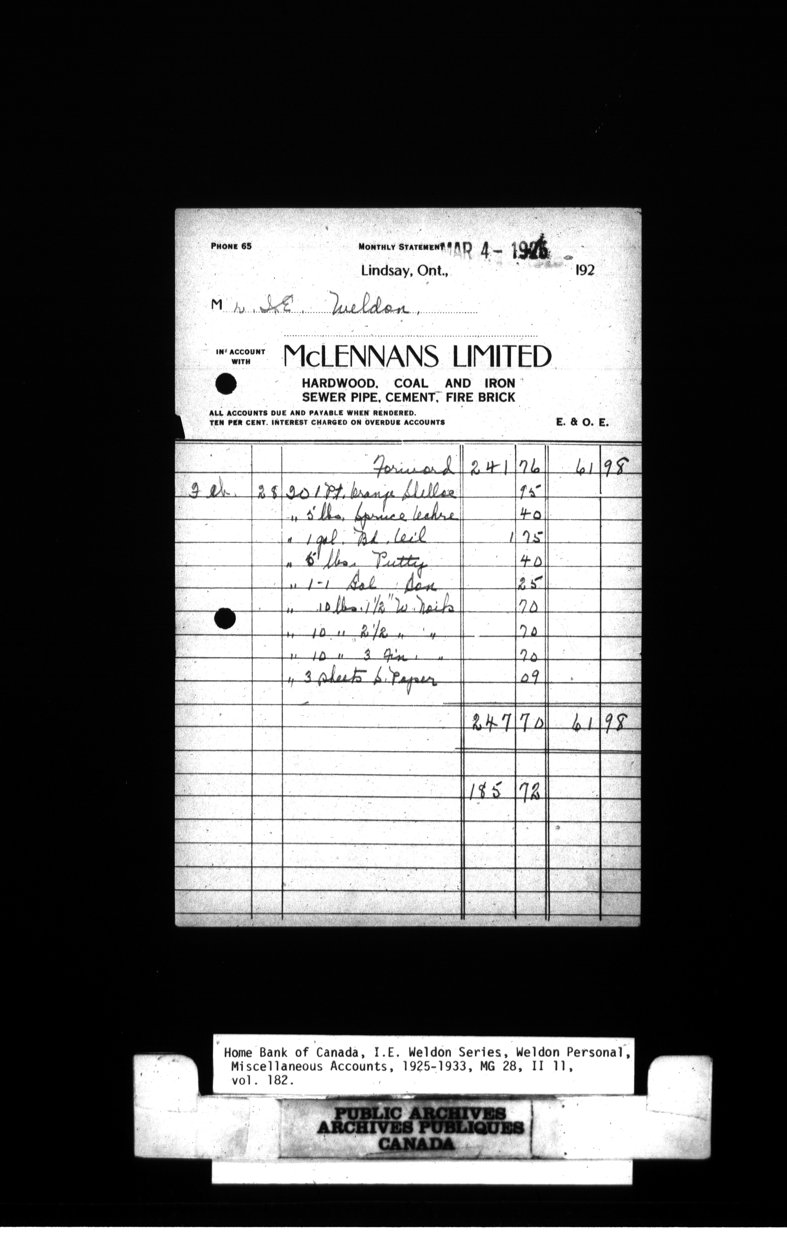 Home Bank of Canada : Correspondence and Weldon Personal - 979