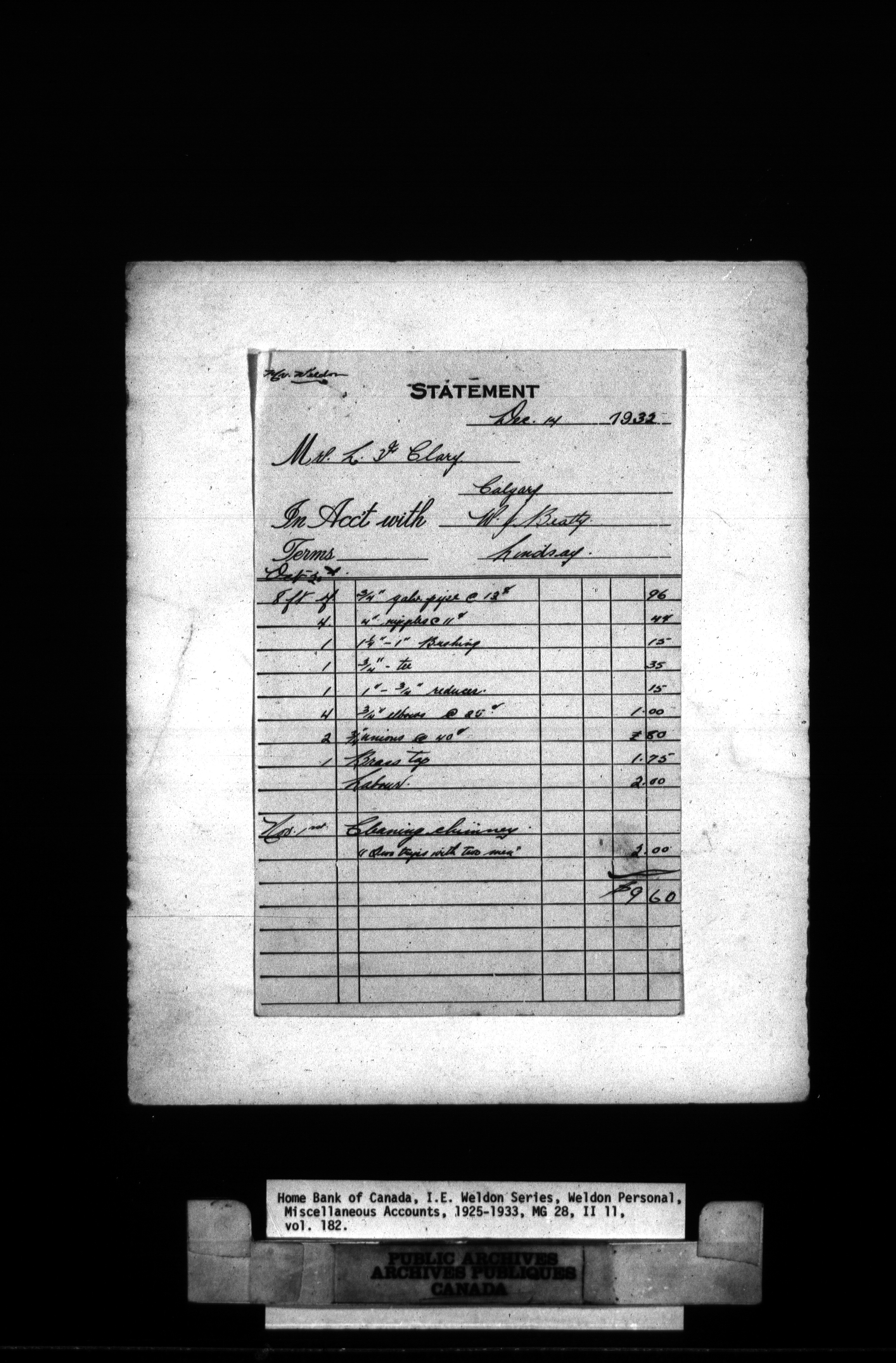 Home Bank of Canada : Correspondence and Weldon Personal - 979
