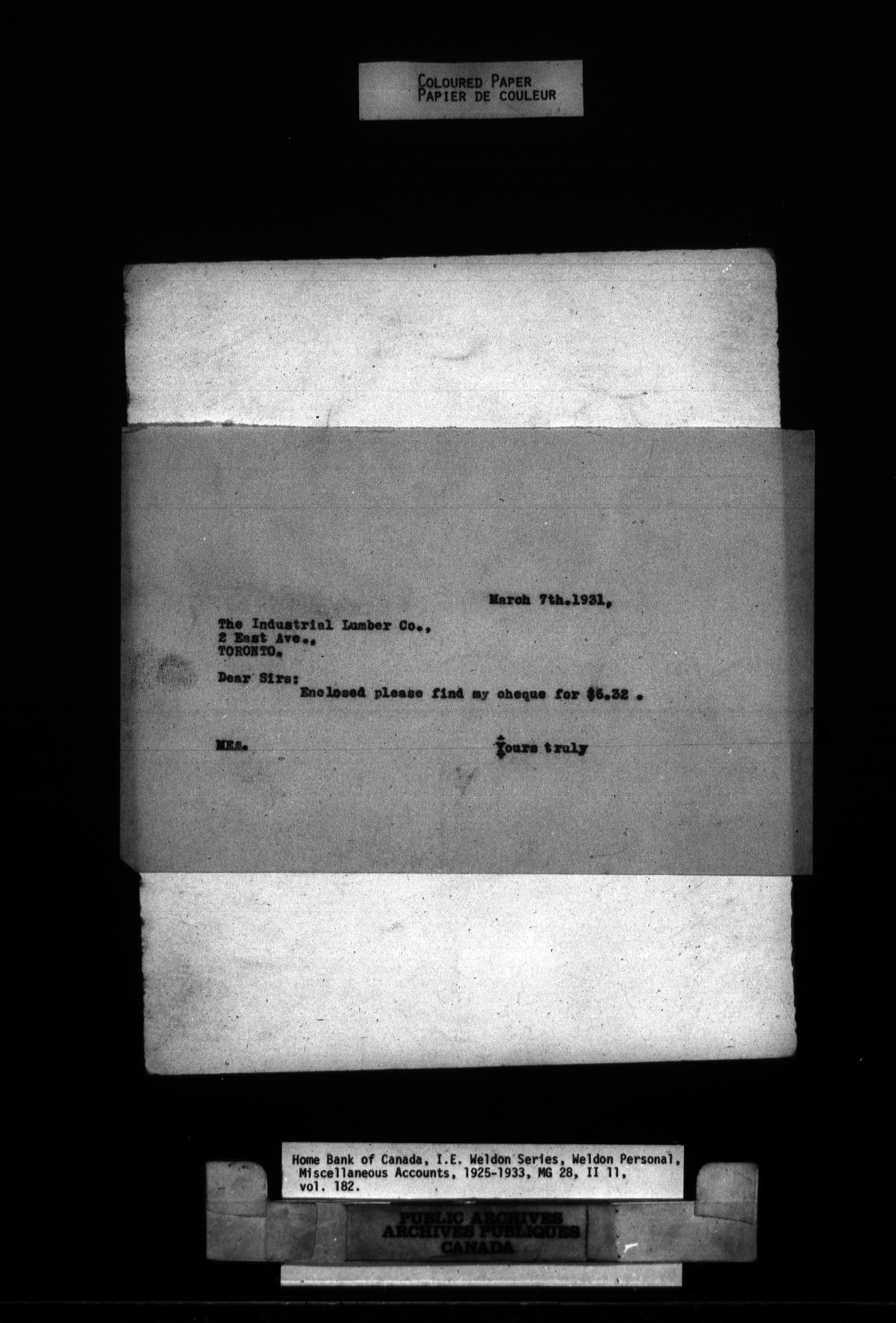 Home Bank of Canada : Correspondence and Weldon Personal - 979