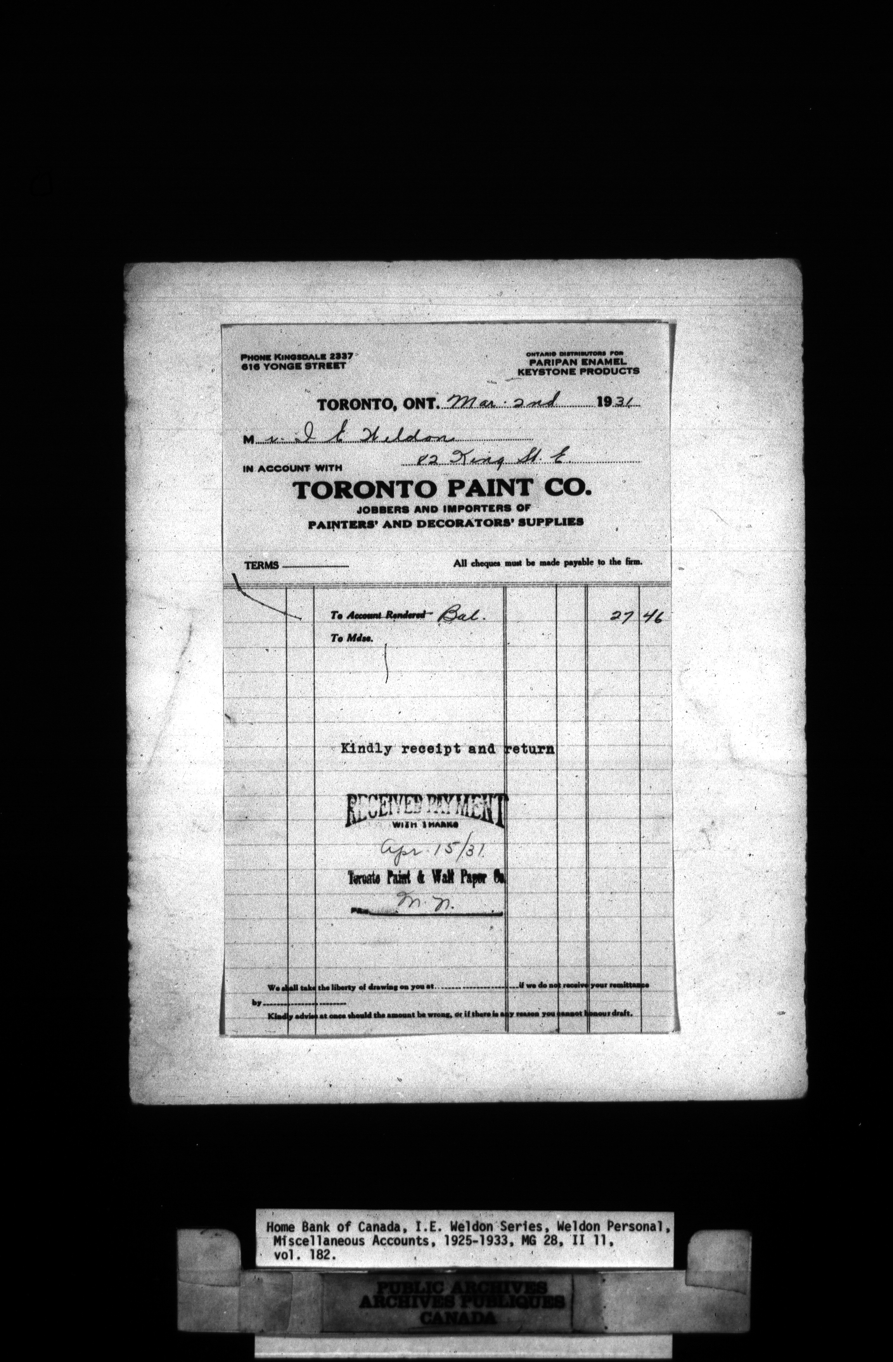 Home Bank of Canada : Correspondence and Weldon Personal - 979
