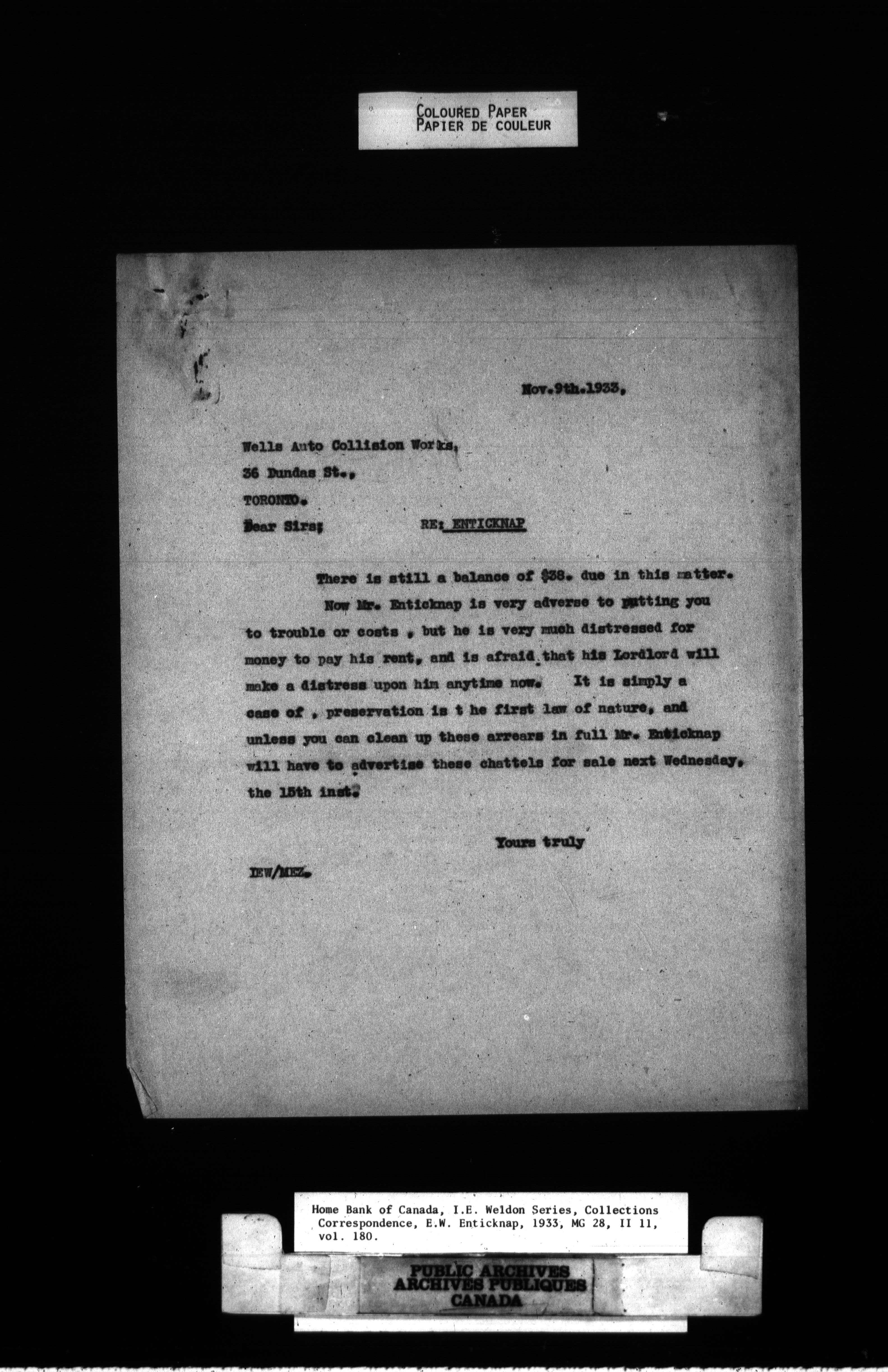 Home Bank of Canada : Correspondence and Weldon Personal - 979