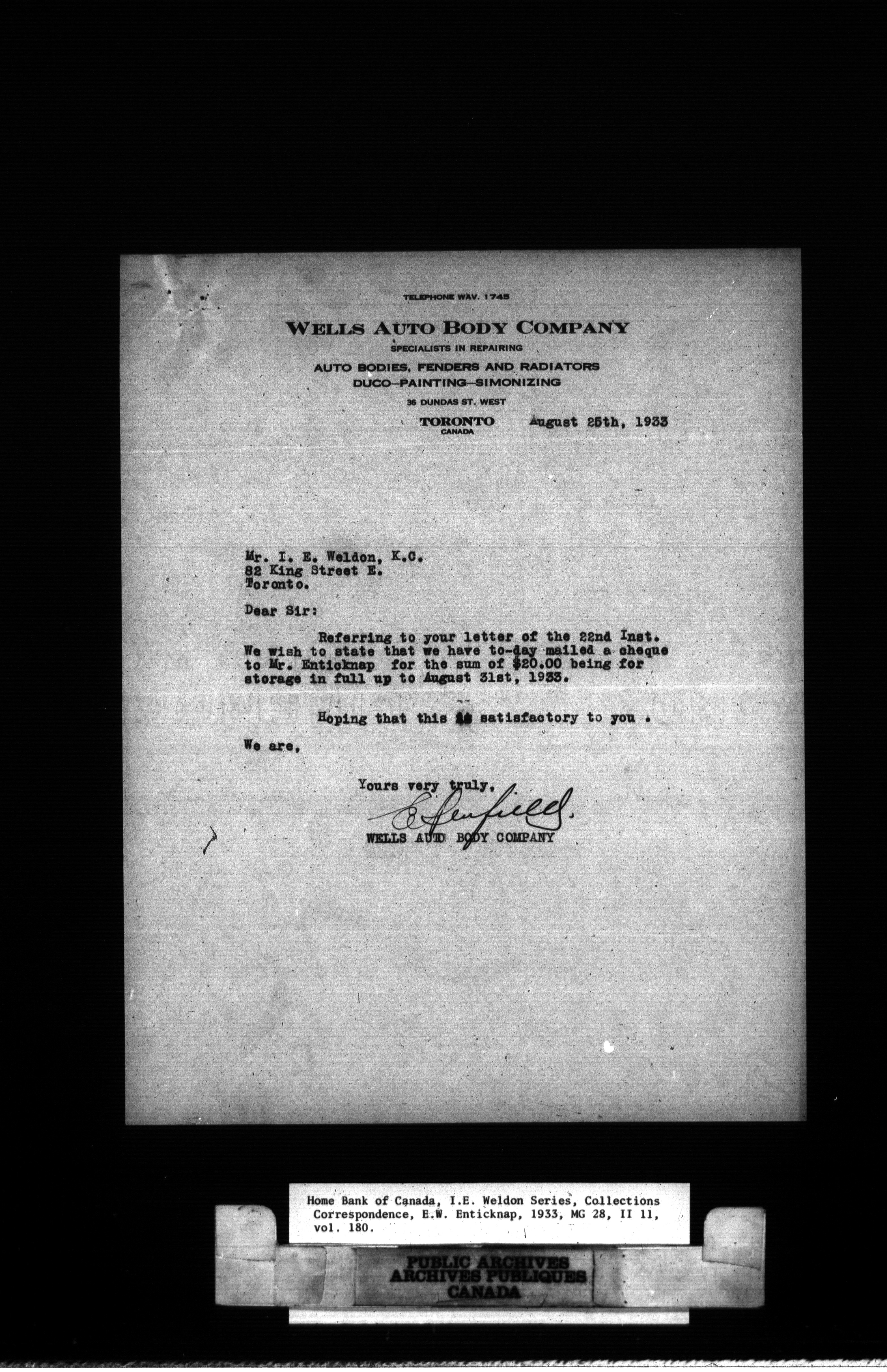 Home Bank of Canada : Correspondence and Weldon Personal - 979