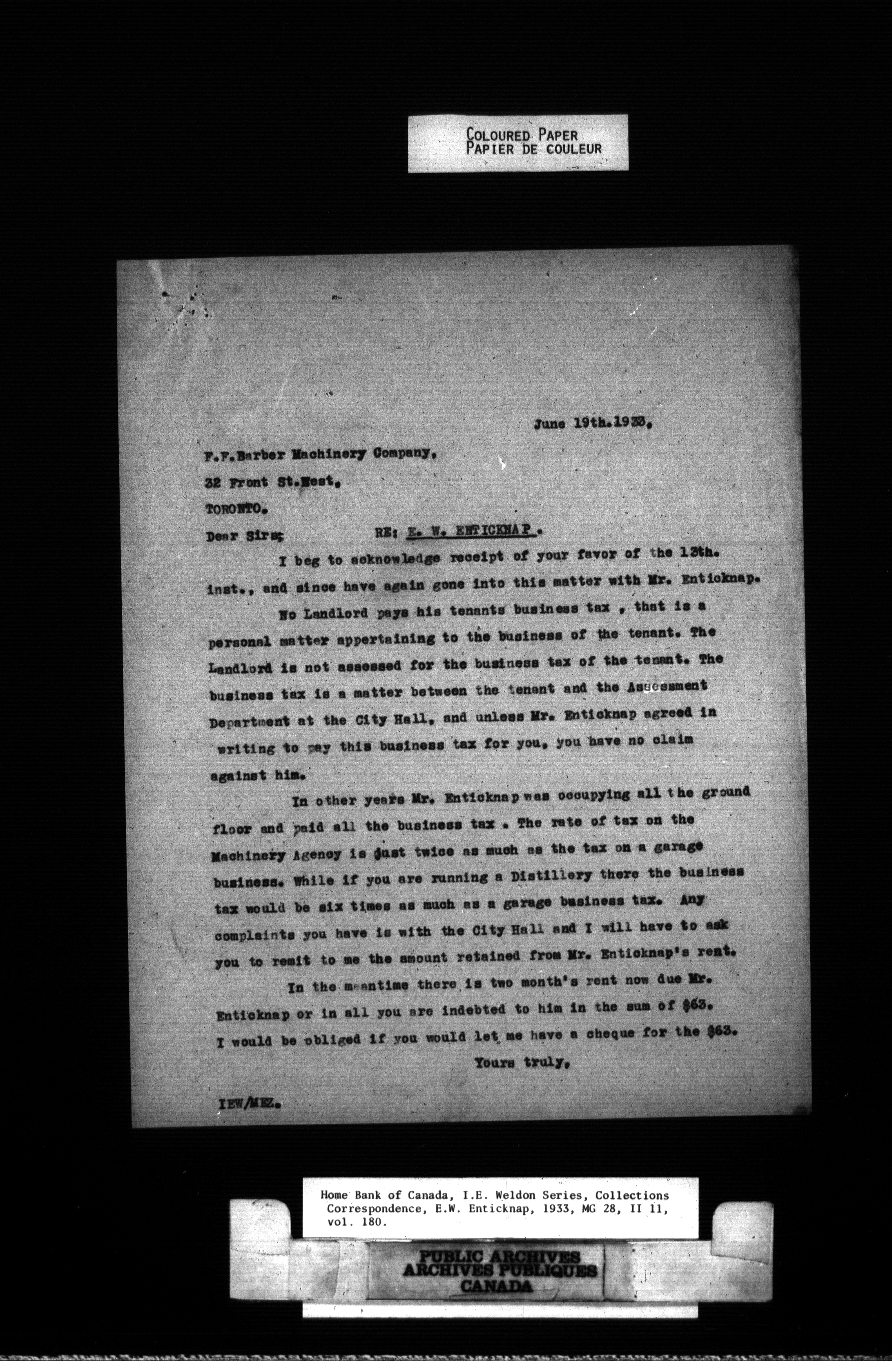 Home Bank of Canada : Correspondence and Weldon Personal - 979