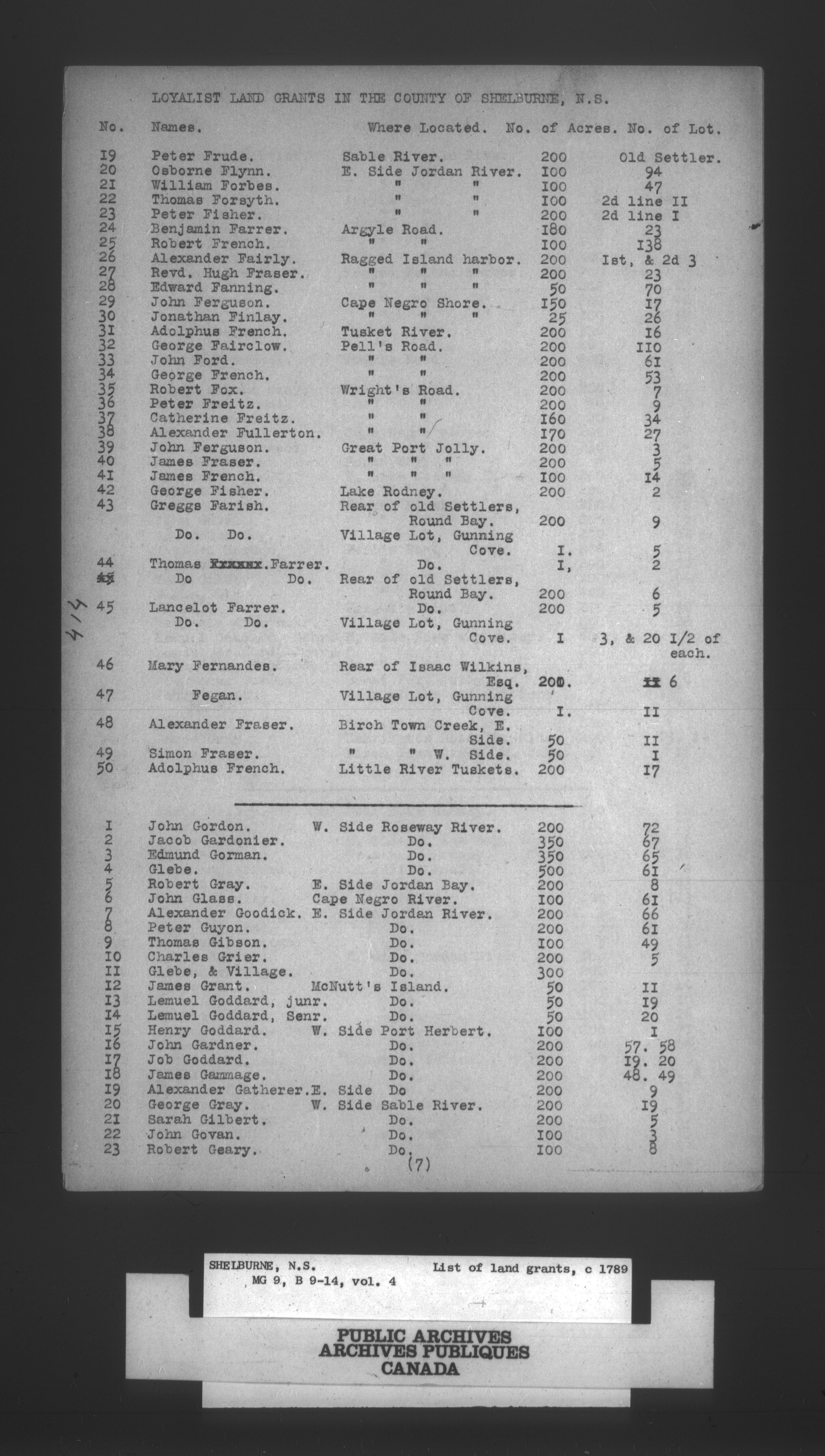Shelburne, Nova Scotia : List of land grants 1789 - H-984