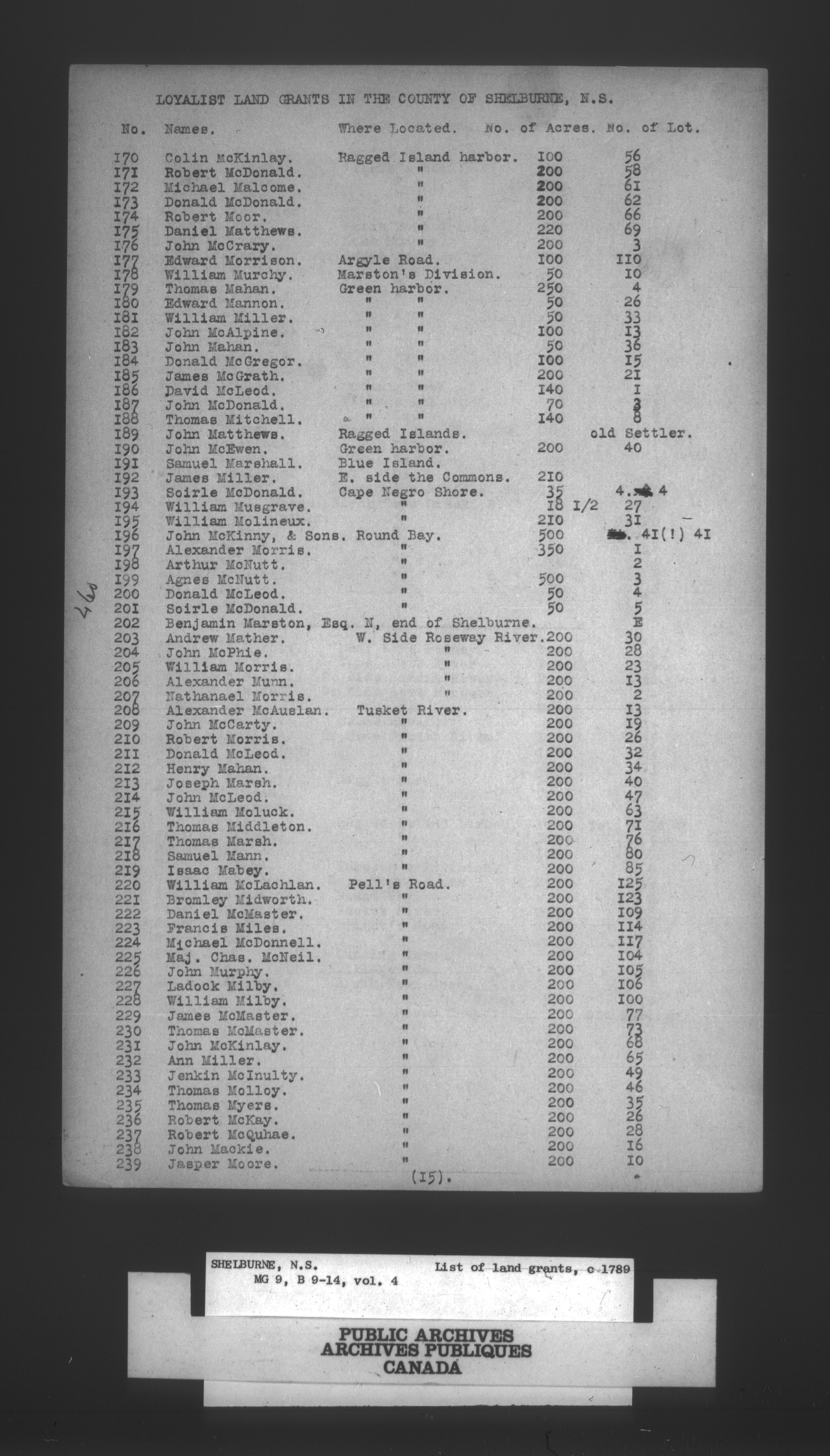 Shelburne, Nova Scotia : List of land grants 1789 - H-984