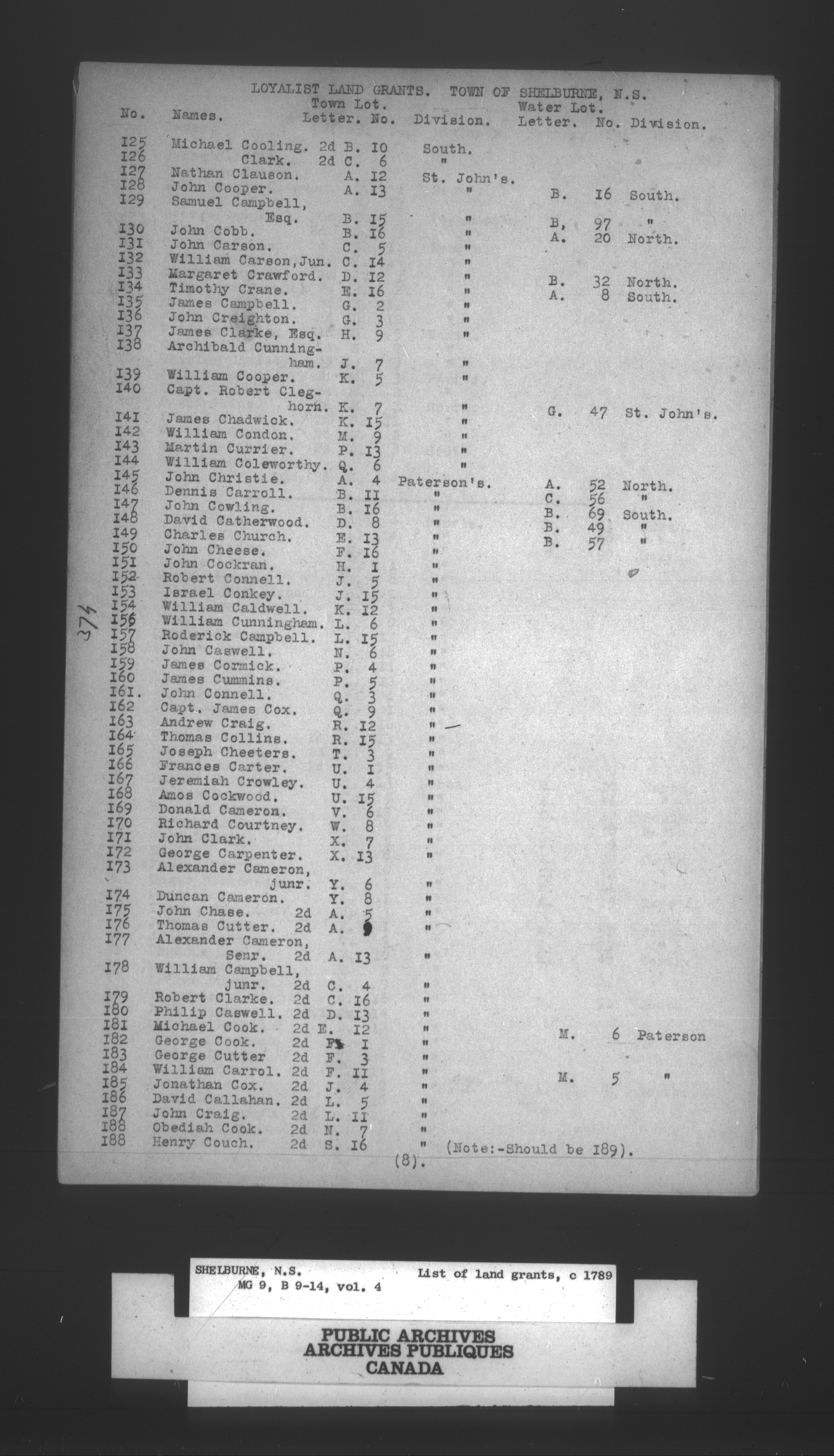 Shelburne, Nova Scotia : List of land grants 1789 - H-984