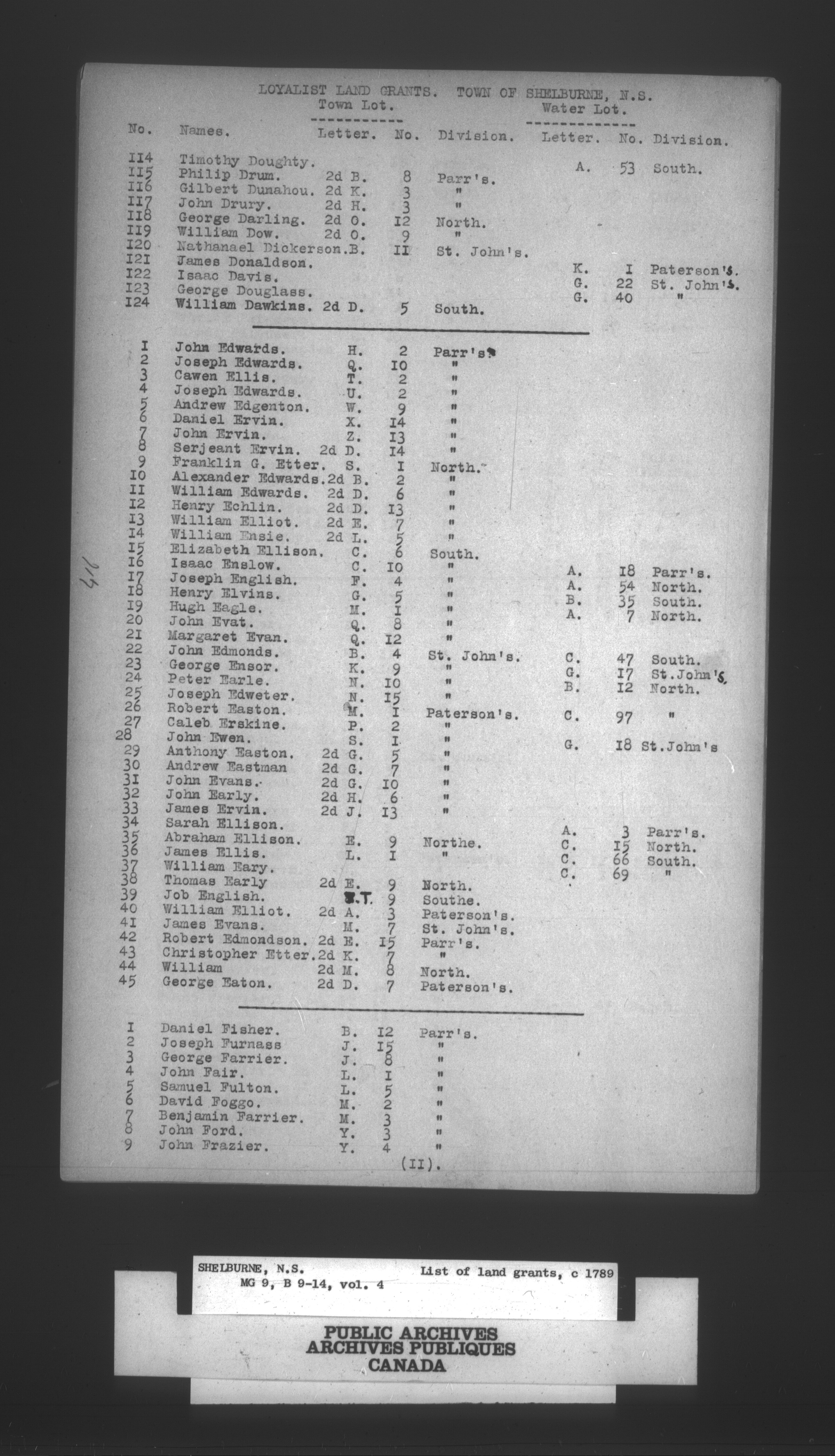 Shelburne, Nova Scotia : List of land grants 1789 - H-984